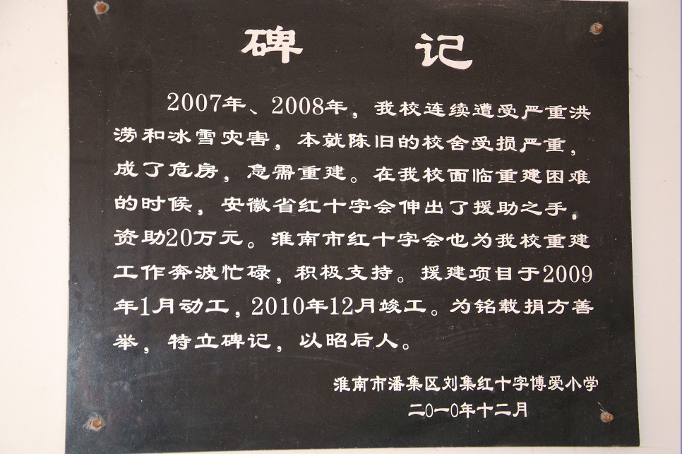 20011年12月9日下午,安徽旅游廣播和淮南市紅十字會攜手合肥星之寶寶馬4S店,走進淮南市潘集區劉集紅十字博愛小學,將關愛留守兒童溫暖之旅在這里進行。 有關本次活動文字和視頻報道,請看本站內更多信息:將“溫暖之旅”進行。