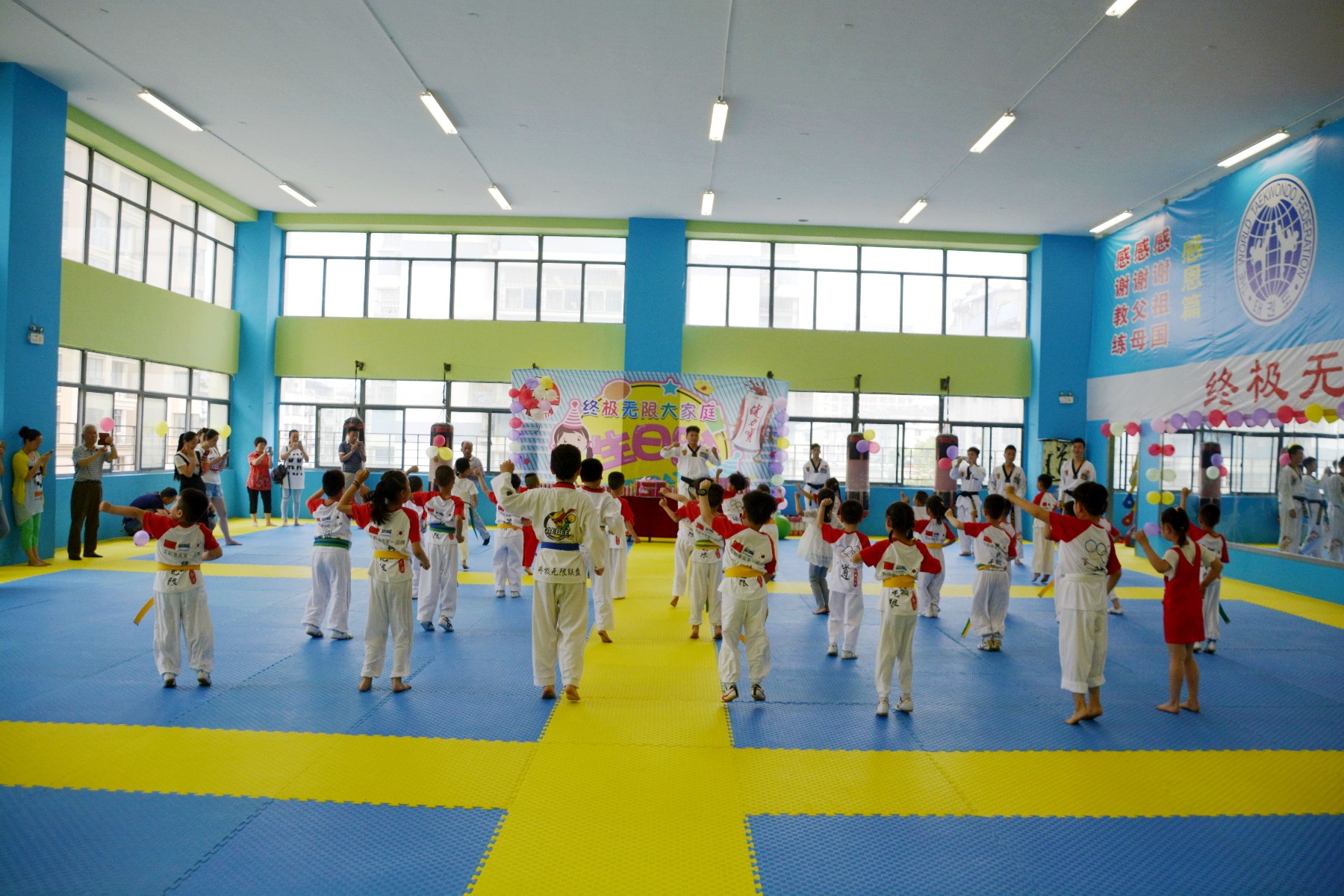 六月—日,在淮南市終極無限跆拳道會館,淮南市終極無限跆拳道教育機構(gòu)的老師們?yōu)榧议L和孩子們舉辦了一場趣味橫生、氣氛熱烈的終極無限大家庭生日趴。