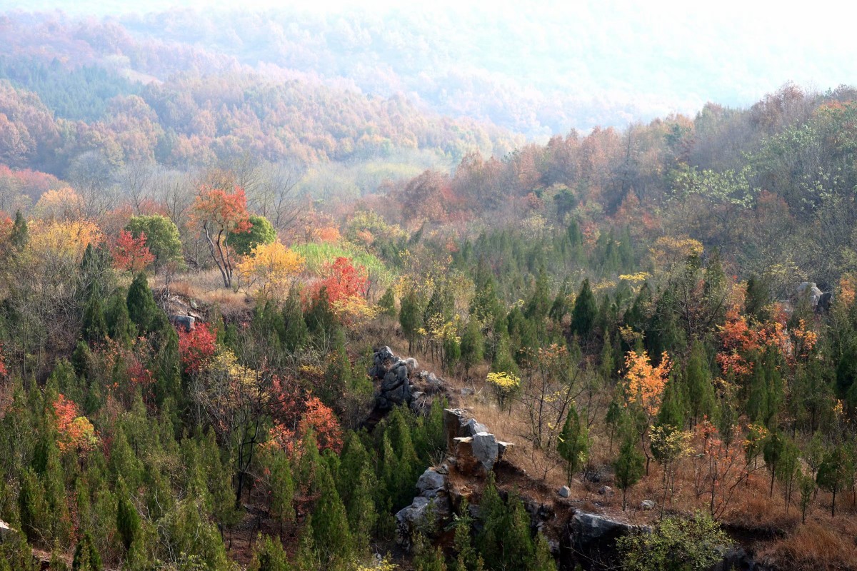 那一樹樹的黃,一樹樹的紅,一樹樹的綠,把山林涂抹得流金溢彩、艷麗曼妙。遠望山林,云霧朦朧,但正是因了這份朦朧,讓秋日的八公山顯得愈發的迷人,恍若置身于童話世界,步入了人間仙境。