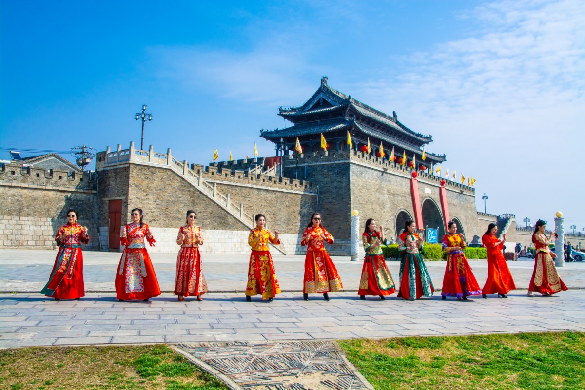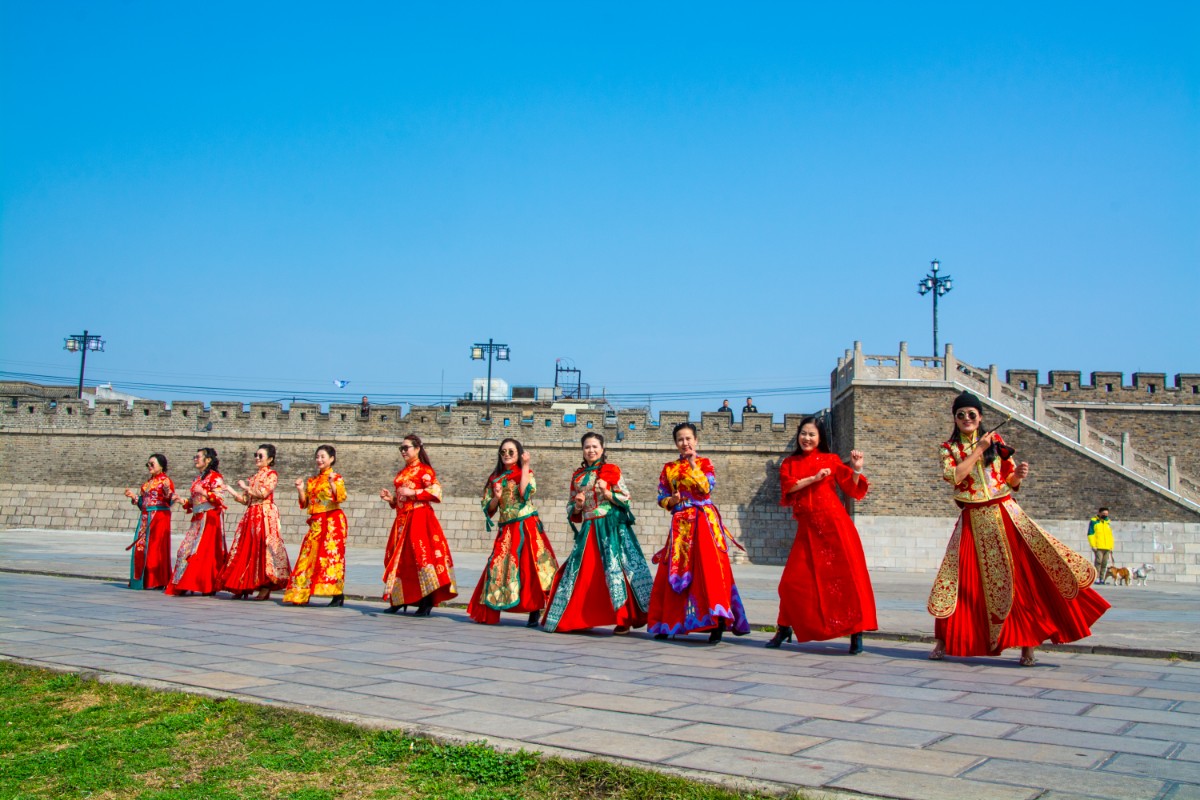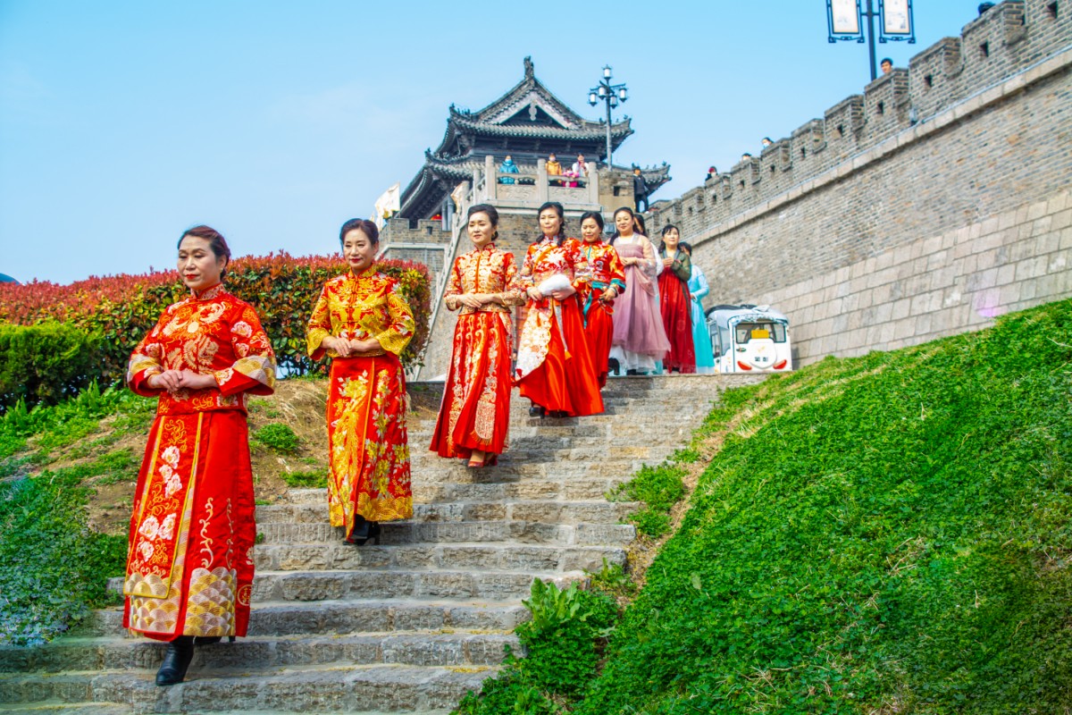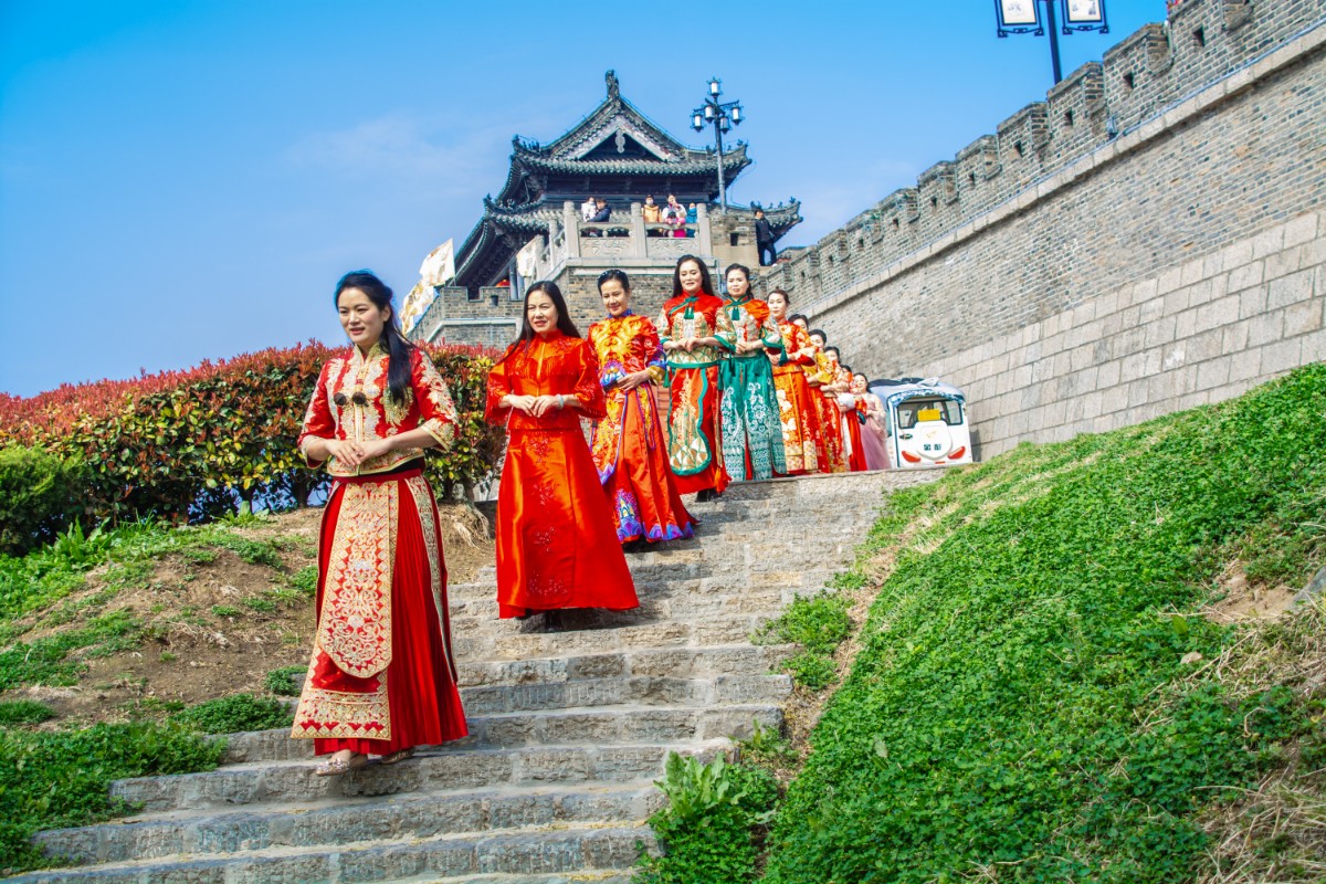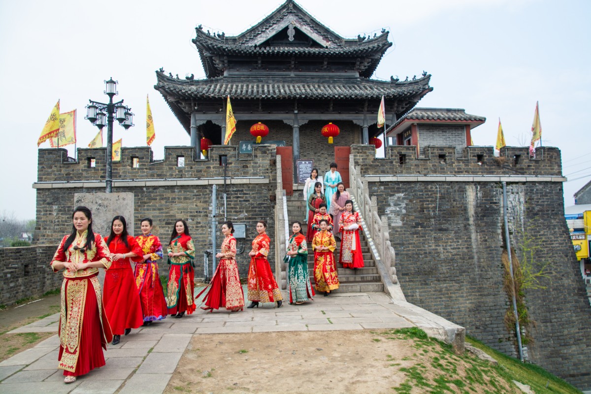 淮南市傳統(tǒng)服飾文化協(xié)會(huì)佳麗走秀壽州古城慶三·八節(jié)