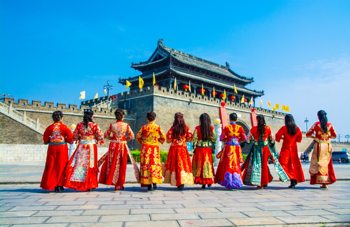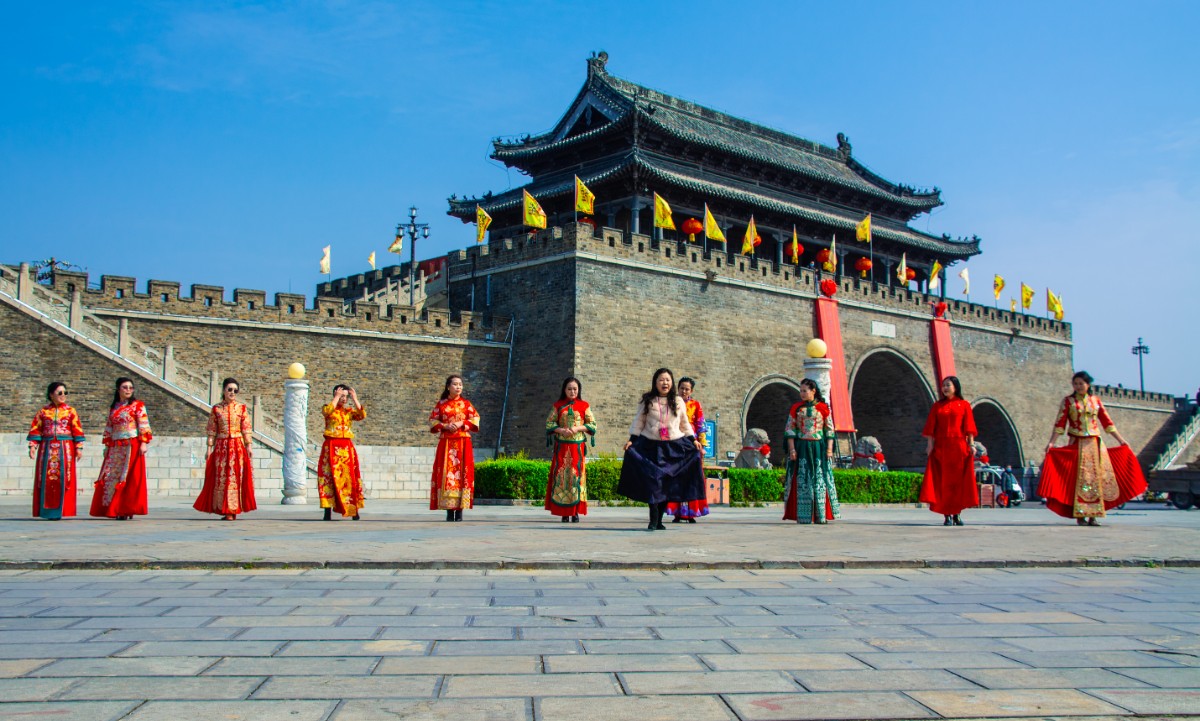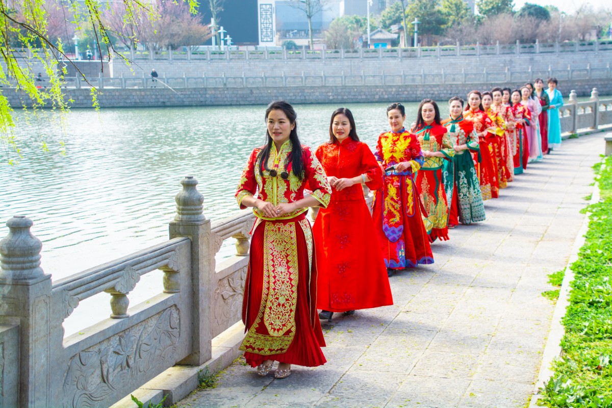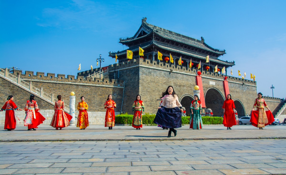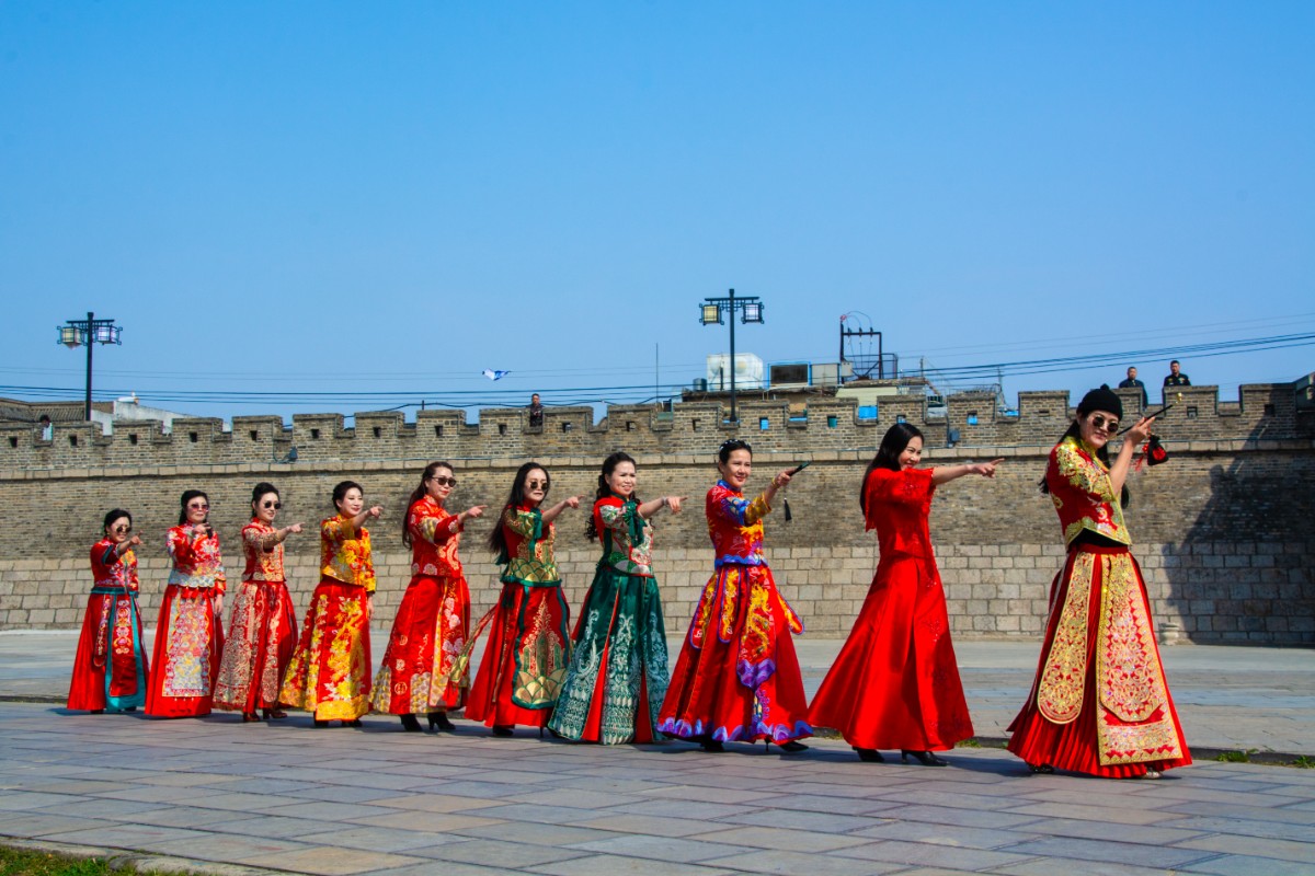 淮南市傳統(tǒng)服飾文化協(xié)會(huì)佳麗走秀壽州古城慶三·八節(jié)