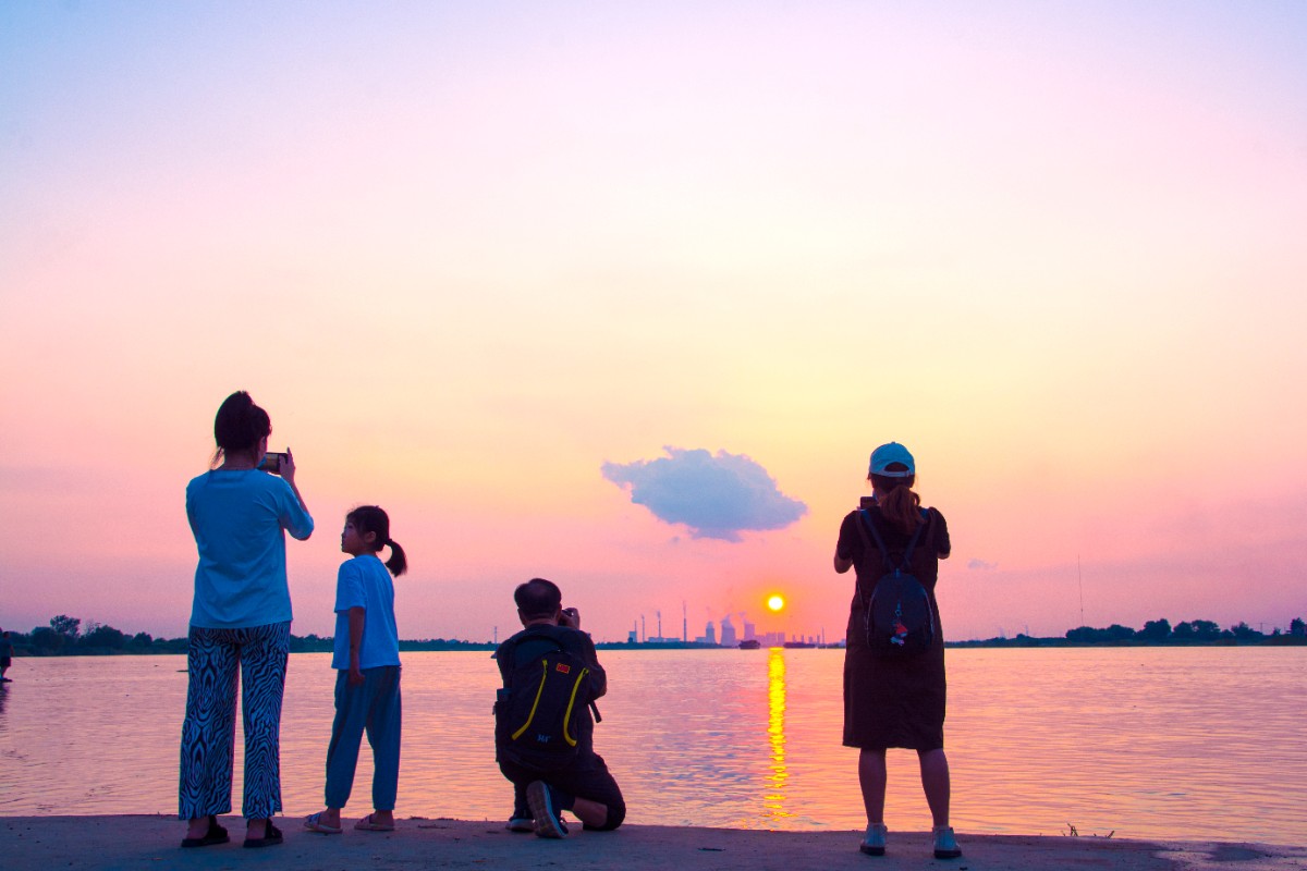 夏日淮河安瀾牛腳下,每到傍晚休閑的人們都不約而同的聚集到這里散步納涼三五成群,在這里還有來自不同行業的攝影愛好者,到這兒端起手中的各種拍攝器材記錄下淮河美麗風光,久而久之這個地方就成了老百姓生活中網紅打卡地、成了淮河岸邊一道靚麗的風景線。