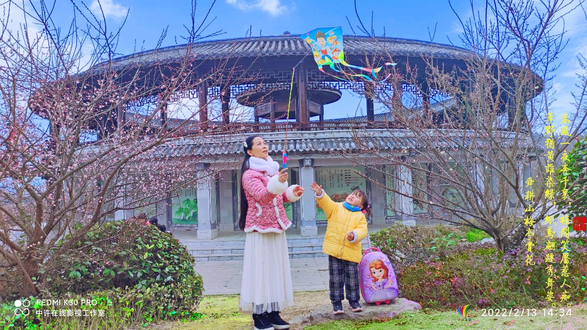 梅花初綻,暗香浮動,紙鳶翩躚,游人如織。