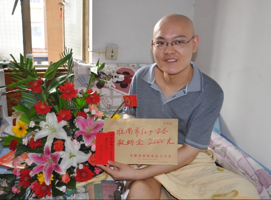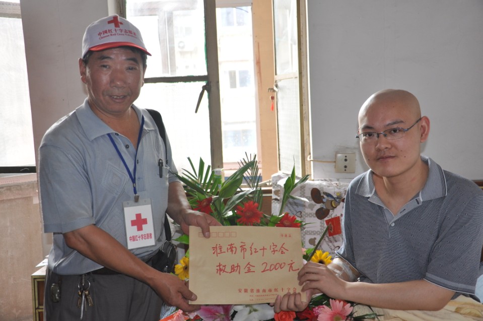 6月14日淮南紅十字會帶領老中青三代志愿者帶著2000元救助金和鮮花、營養品來到紡織廠社區看望家境貧寒身患骨肉瘤的大學生崔杰,給這個病痛中的陽光男孩帶來祝福和鼓勵。有關本次活動的文字報道,請看本站內更多信息:http://hnpictures.com/display.php?id=204