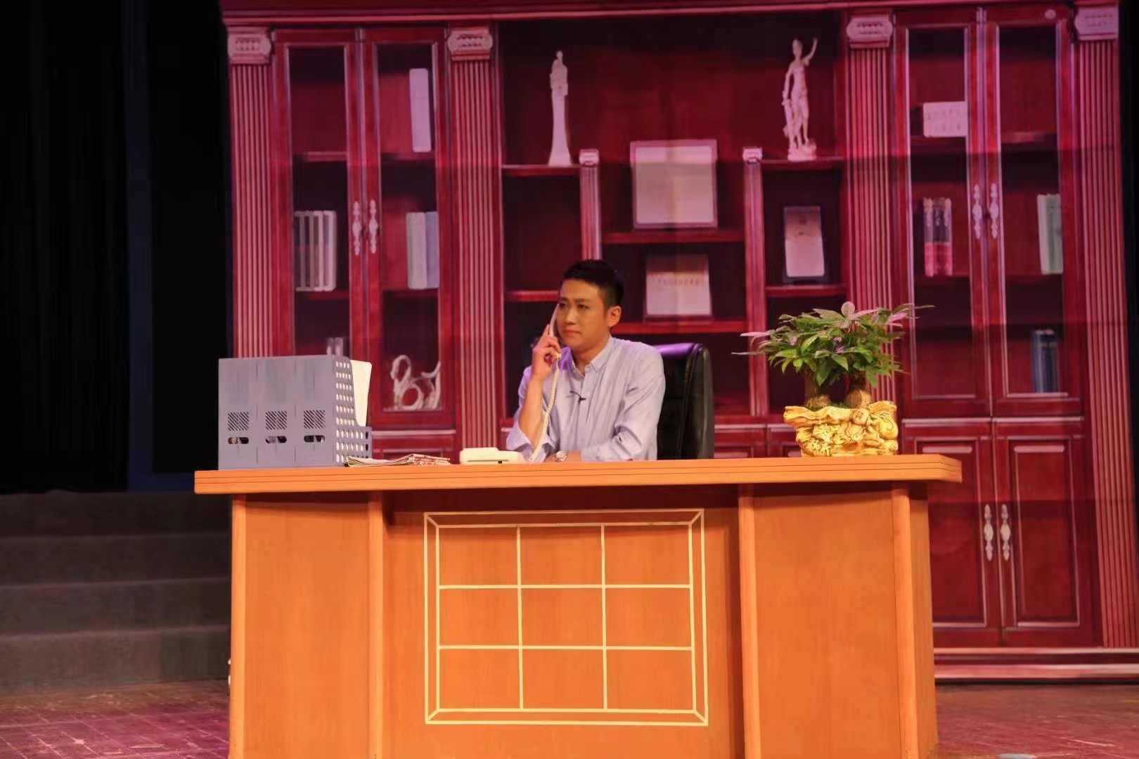 “時光荏苒,一轉(zhuǎn)眼我進鳳臺縣推劇團至今已20多年了,想想剛進團的時候才是一個新生代的孩子,現(xiàn)在已經(jīng)是團里面的臺柱子了”。他就是淮南市戲劇家協(xié)會副主席、“非遺”傳承人、鳳臺縣推劇團副團長石巖巖。20多年來,石巖巖無論是在專業(yè)技能還是為人處世方面都學(xué)到了很多。他覺得推劇演員是個神圣的職業(yè),身上必須有“真本事”。俗話說得好:“師傅領(lǐng)進門,修行在個人”,所以他感到演好戲一定得靠自己勤學(xué)苦練,刻苦和用心,深刻理會每一個角色的塑造,才能更好地把握人物的心理和形象的表達(dá)。精湛的藝術(shù)需要時間的磨煉,雖然勤奮不能讓你一夜成功,但會在不知不覺中積累你的成果。人生需要挑戰(zhàn),更需要堅持和勤奮。老師們常叮囑:“要想演好推劇,必須會做一個德藝雙馨的藝術(shù)人。石巖巖一直把這句話作為座右銘,在從事推劇藝術(shù)生涯中時刻警示自己。 石巖巖出生在農(nóng)村,由于父母對推劇的喜愛,所以在父母的耳濡目染下,對推劇產(chǎn)生了濃厚的興趣,從小立志一定要做一名出類拔萃的推劇演員。 1997年他考入了鳳臺縣花鼓燈推劇藝術(shù)學(xué)校,在校3年,他尊師愛友,為了更好地傳承、發(fā)展好推劇,共同學(xué)藝,在老師的精心指導(dǎo)下,他和學(xué)員們冬練三九,夏練三伏,在“唱、念、做、打”方面狠下功夫,堅持做到精益求精。當(dāng)時學(xué)員們津貼也僅能維持生活,在這種艱難困苦條件下,石巖巖憑借對推劇藝術(shù)的一腔熱忱,他和同窗學(xué)員們艱難地度過了三年學(xué)員基礎(chǔ)訓(xùn)練的日子。梅花香自苦寒來,在上級文化部門和老藝人的關(guān)心和悉心指導(dǎo)下,他學(xué)有所成,不但掌握了推劇藝術(shù)的技巧,而且還拓寬了戲路,準(zhǔn)確地把握了人物的性格,成為學(xué)校的優(yōu)秀學(xué)員,經(jīng)常下基層演出,進行實踐性鍛煉。 由于石巖巖在藝校成績優(yōu)異,2000年畢業(yè)后被分配到縣推劇團工作。他想,文藝工作者是社會公眾人物,需要以良好的公眾形象面對觀眾,以更多的優(yōu)秀作品展現(xiàn)給觀眾。良好的公眾形象指的不光是舞臺上的美,在臺下還要做一個德才兼?zhèn)涞娜恕?/span>藝術(shù)家們認(rèn)為,真正品德高尚的人才能創(chuàng)作出歷久彌香,深受觀眾喜愛的藝術(shù)作品。平時,石巖巖十分重視理論提升和業(yè)務(wù)知識學(xué)習(xí);入黨之后,他更加嚴(yán)格要求自己,注重加強職業(yè)道德理論修養(yǎng),不斷提高思想品格,嚴(yán)于律己,始終保持著“戲大于天”的心理,用良好的公眾形象贏得大家對自己的認(rèn)可與稱贊。在劇團他主工老生,在學(xué)習(xí)和演出過程中,他深知“臺上一分鐘,臺下十年功”這個硬道理,在向老一輩推劇和花鼓燈老師王德會、張士根以及安徽省職業(yè)藝術(shù)學(xué)院教授學(xué)習(xí)技藝過程中,把老一輩藝術(shù)家們精湛藝術(shù)變?yōu)橐延?/span>,刻苦磨煉;經(jīng)過20多年的學(xué)習(xí)實踐,他形成了自己的演出風(fēng)格,成為當(dāng)今推劇舞臺上不可多得的老生演員。“戲比天大,精益術(shù)精才能對得起觀眾的掌聲,不辜負(fù)黨和藝術(shù)家們的精心栽培”。從藝以來他碩果累累,曾獲得多個演出獎項。然而他仍然不忘初心,刻苦鉆研,用心揣摩,只為了在 舞臺上把戲演繹得更完美。每當(dāng)拿到劇本,石巖巖會在第一時間思考如何塑造人物、演活角色。有時白天他刻苦排練,晚上睡在床上想想看還有哪些需要改進;有時為了追求完美,聽錄音看錄像還樂此不疲......“想成點活,就得有那股子勁,不瘋迷不成活”!石巖巖饒有興趣地跟同行們說。 去年向建黨百年獻(xiàn)禮,縣推劇團新創(chuàng)排了一部反映精準(zhǔn)扶貧的劇目《幫扶情緣》,石巖巖在劇中扮演身殘無助的汪老漢,在鎮(zhèn)政府李鎮(zhèn)長的精準(zhǔn)幫扶下,汪老漢憑一門剪紙手藝走出貧困。鎮(zhèn)里工作人員多次登門請汪老漢在“脫貧申請書”上簽字,被汪老漢謝絕。汪老漢意在我身殘志不殘,我要將我的手藝傳授給其他貧困戶,帶動大家共同脫貧。為了演好這一角色,排練時,他在導(dǎo)演的精心指導(dǎo)下,對戲劇中這一身殘志堅的先進人物在不同情況下的道白、動作、身段、唱腔不斷揣摩,反復(fù)苦練,把劇中主人公高大形象表現(xiàn)得淋漓盡致。2021年10月,此劇通過層層篩選,順利地參加了全國展演,并得到了專家和評委們的一致好評。 石巖巖常對演員同事們說:“我們既然選擇了戲曲這項工作,就要堅持,就要百倍努力”。在他看來,每一次登臺演出都是在傳播推劇,他自是倍加珍惜和萬分努力。20多年來,他主演了多部推劇,其中一部分劇目被錄制碟片,為保護和發(fā)展、推劇藝術(shù)傳承,留下了寶貴的財富。他從藝以來,獲得多個演出獎項。今年3月初,他主演的推劇小戲《物歸原主》成功入選小型劇目和作品創(chuàng)作資助項目,這是淮南市文藝作品首次獲得國家藝術(shù)基金資助。全國僅14個劇目入選,鳳臺推劇是唯一入選的縣級小戲。他還先后榮獲全國人口文華獎一等獎、安徽省群星獎一等獎、安徽省小戲小品大賽二等獎、安徽省第七屆花鼓燈會表演一等獎;在創(chuàng)排的優(yōu)秀劇目《幫扶情緣》中,他主演的角色榮獲“金百花”全國小型戲劇戲曲作品展演大賽優(yōu)秀