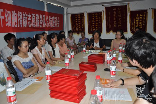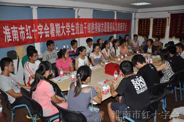 8月19日下午,淮南市紅十字會召開2013年暑期大學生造血干細胞捐獻志愿服務隊總結座談會。志愿服務隊代表、老志愿者代表、媒體記者約40人參加了會議。 會上總結了一個月來暑期大學生造血干細胞捐獻志愿服務隊工作服務情況,交流了服務心得、經驗方法,并就造血干細胞捐獻宣傳動員中的存在困難和問題以及今后如何更好地做好宣傳動員工作提出了許多良好的意見和建議。會議上宣布了對暑期大學生造血干細胞捐獻志愿服務隊優秀隊員的表彰決定,為優秀隊員頒發了榮譽證書。