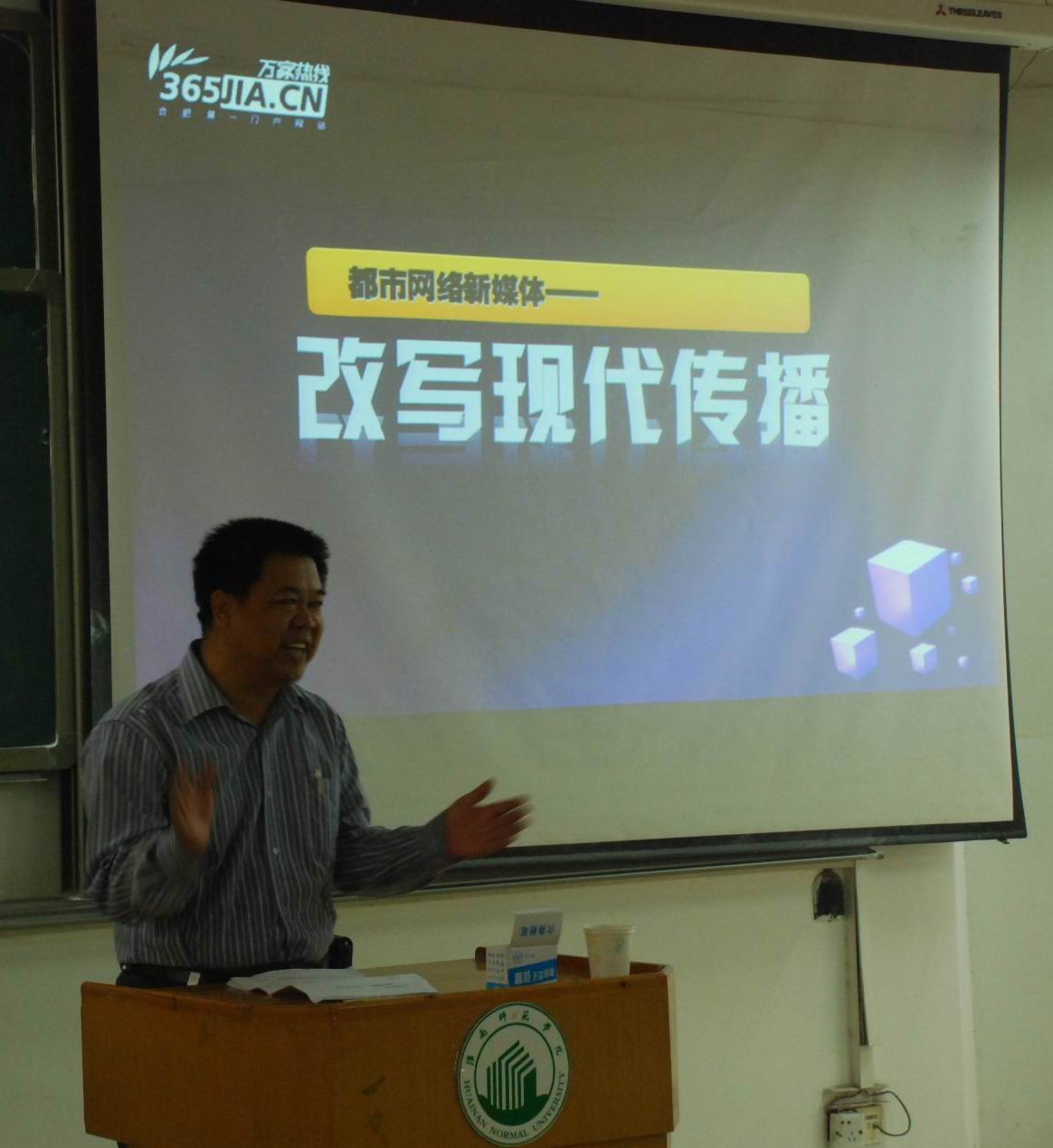“在過去的5年,互聯網成為了廣播、報紙、雜志和電視的致命殺手!” 中國都市報冬天的來臨。 “三顆蘋果改變世界!” “第三代文盲是沒開通微博!” “如果你的微博有100萬用戶,恭喜您是CCTV了!” “網絡可讓你一夜成名,也可讓你一夜之間您下地獄!” 直通中南海留言板開通、網上訂購火車票、蒙牛與伊利之戰、騰訊與360之爭、微博直播本拉登被擊斃和溫州動車事件…… 劉總寬廣的視野,海量的信息,獨特的視角,語驚四座,給淮師學子們帶來了巨大的震撼,讓淮師學子們深深感受到了互聯網對政治、商業、傳媒業、生活等多方面的影響,引發了他們對未來擇業的思考。