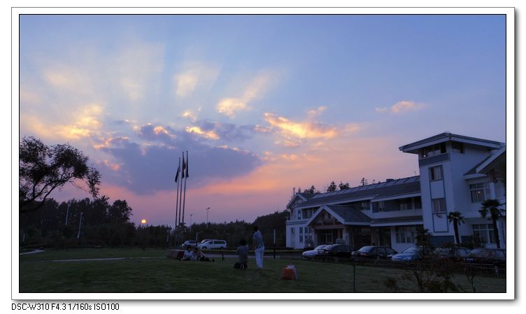 夕陽下 一家幾口其樂融融 溫馨四溢