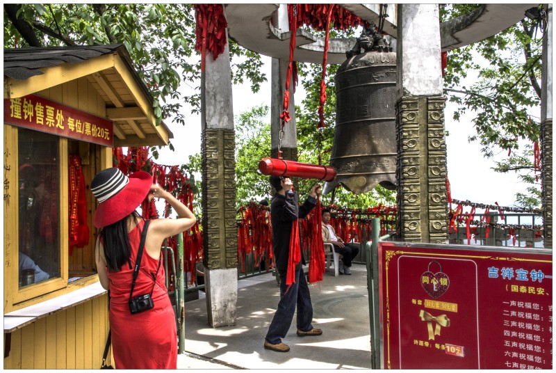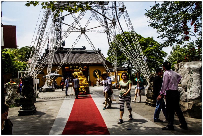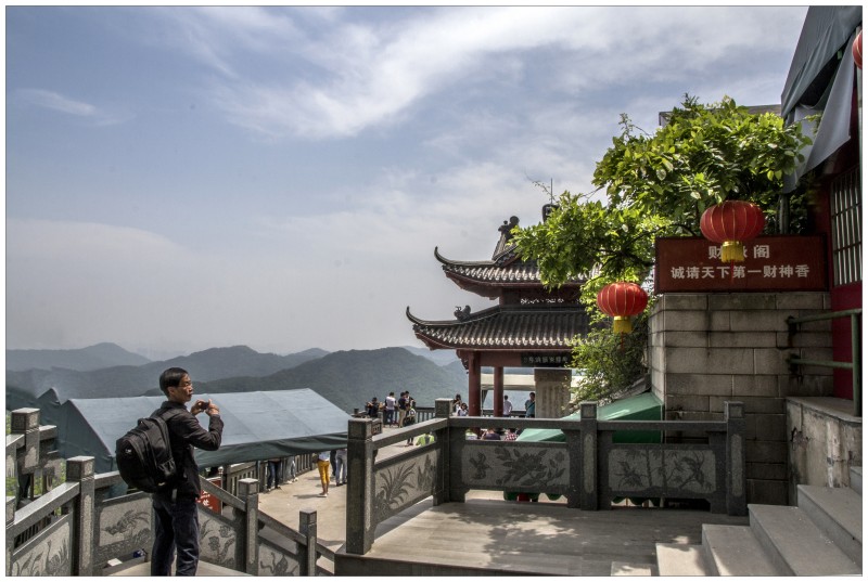 北高峰上也有個寺廟的,規(guī)模很小但是香火很旺,因為這里是財神廟,蕓蕓眾生除了對如來觀音要頂禮膜拜,再門庭若市的應(yīng)該就是財神爺?shù)募伊恕YI票的居然是個小和尚,里面給解卦講簽的和尚也不少,這陣子股市牛得很,三億股民心里應(yīng)該都供著眼前著瞇著眼微微笑著的財神吧。把財神廟建在北高峰上,也挺有它的用意,不先經(jīng)歷一番辛苦攀登,哪那么容易就見到咱們財神爺爺啊。不過,想想如來觀音是佛教的,而財神應(yīng)該算道教的,總感覺,道教里面的神仙都很親民,比起救苦救難的菩薩更有很多輕松快樂的味道,八仙過海、龍王、二郎神、太上老君,似乎他們不需要老百姓有多么恭敬,人們耳熟能詳?shù)膫髡f故事不管是褒的貶的,用他們開開玩笑也無所謂,他們的廟堂里依舊香火裊裊,他們在人民心里更像是自己家人,而對天竺遠道來的佛祖菩薩卻總是客人,要必恭必敬不敢造次。