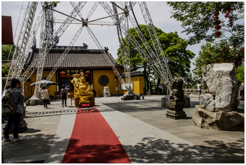 北高峰山頂上面有一個寺廟,叫靈順寺,距今已有1600多年的歷史,相傳為東晉慧理禪師創(chuàng)建的“五靈”(靈鷲、靈隱、靈峰、靈順、靈山)之一,宋時,為奉祀婺源五顯神,增建華光殿,供奉五福神,被宋徽宗賜名“靈順廟”,現(xiàn)存大殿為明末清初所建,規(guī)模宏偉,堪稱華夏財神廟之最,匾額上書的是“天下第一財神廟”,由明代著名書畫家徐文長所書。,旁邊還有壽星、祿神、福神、平安神,醫(yī)神、喜神、招寶、納珍、招財、利市、和合二仙等、、麒麟送子、月下老人等。以財神為主題,輔以健康、平安等相應(yīng)訴求的財神廟中有如此多個工種的財神老爺聚聚一堂的確實堪稱中華一絕。