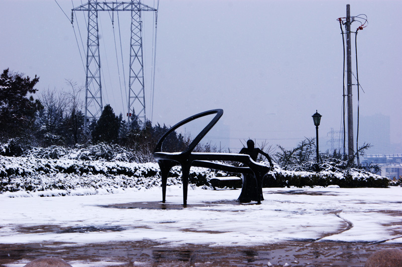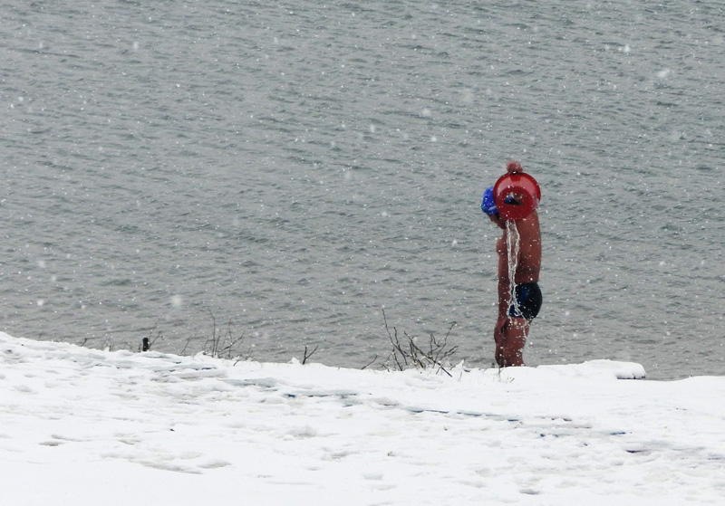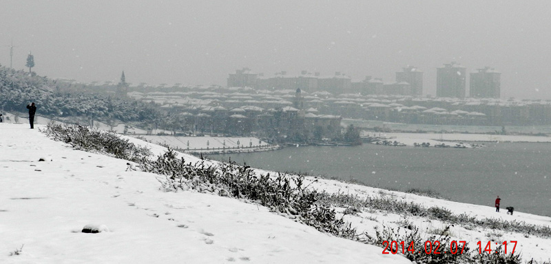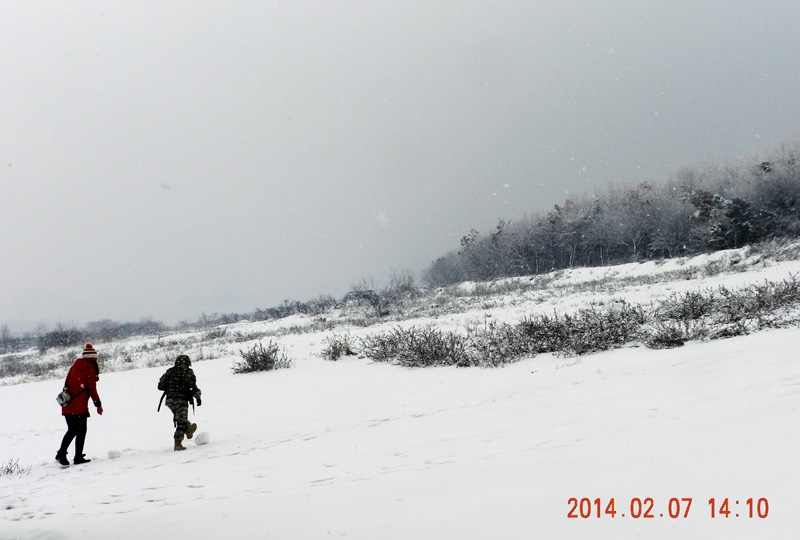 2014年2月7日雪中游泳泉山湖后,熱身跑步拍雪景。。。。。。。。。