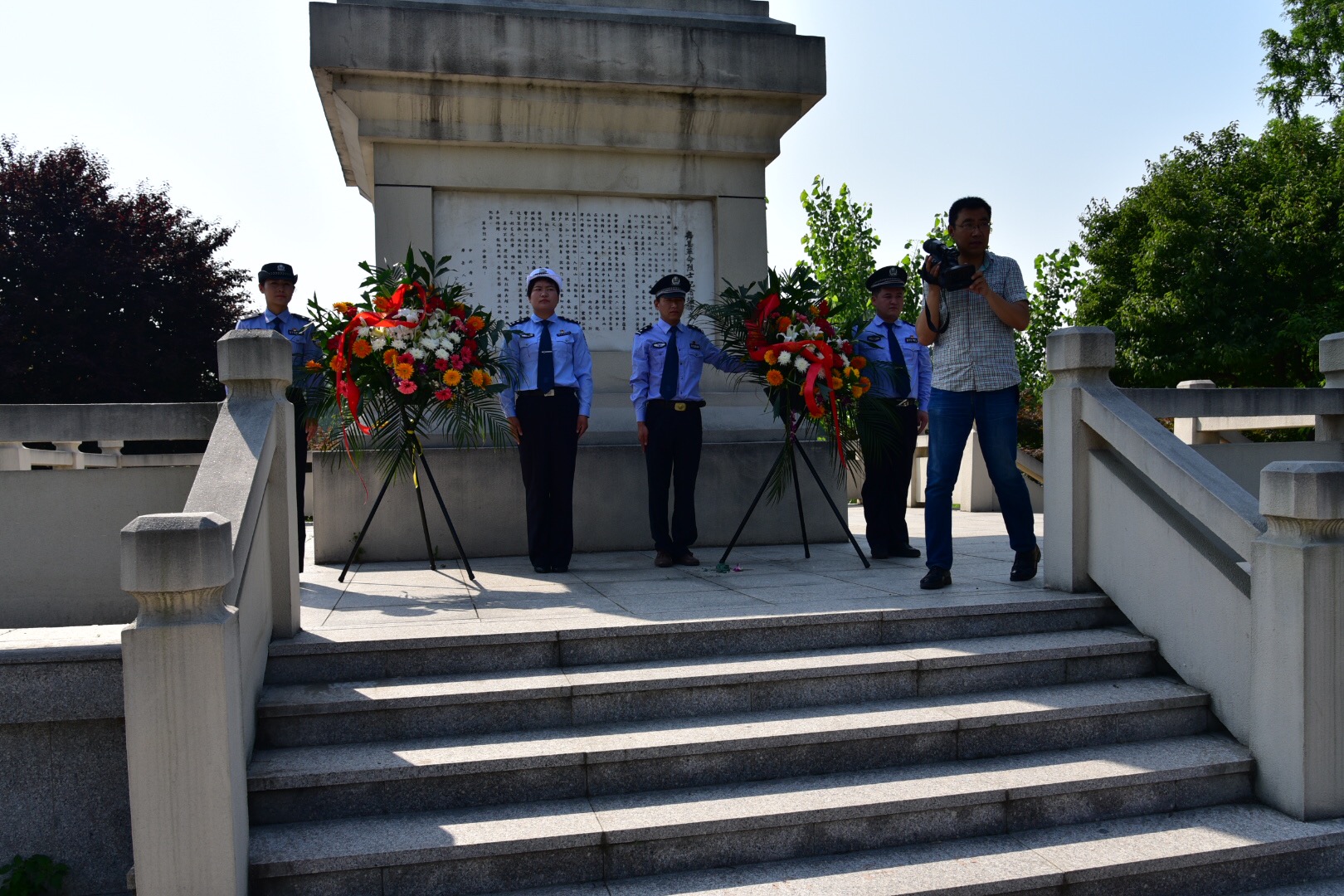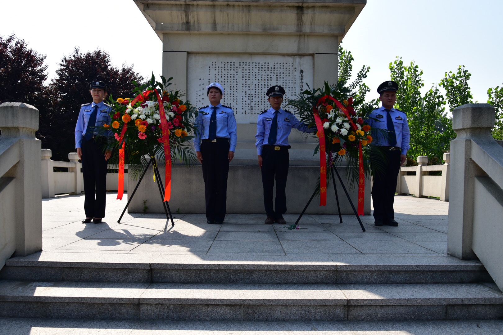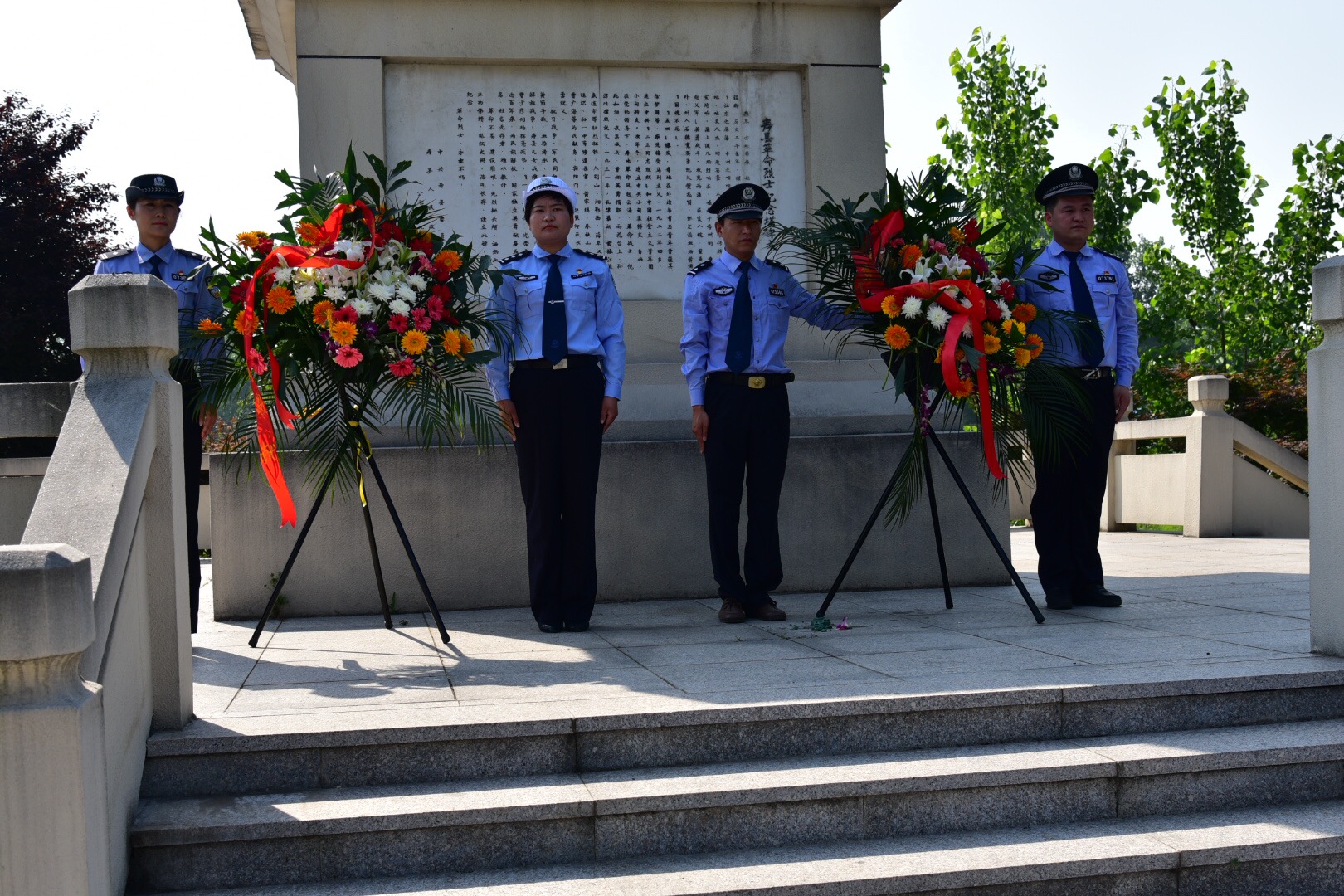 壽縣公安機(jī)關(guān)組織干警向小甸集革命烈士紀(jì)念碑敬獻(xiàn)花圈重溫入黨誓言
