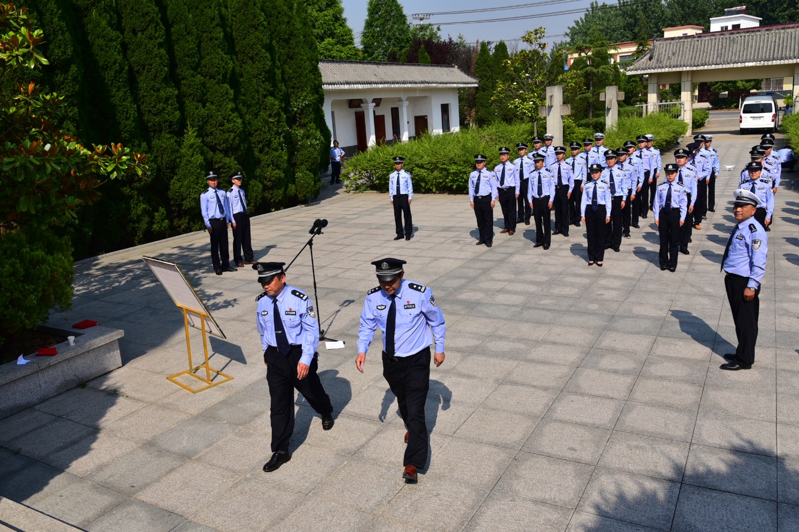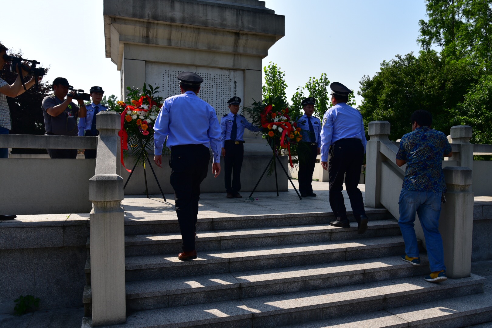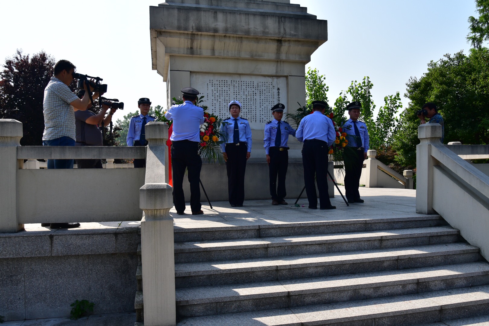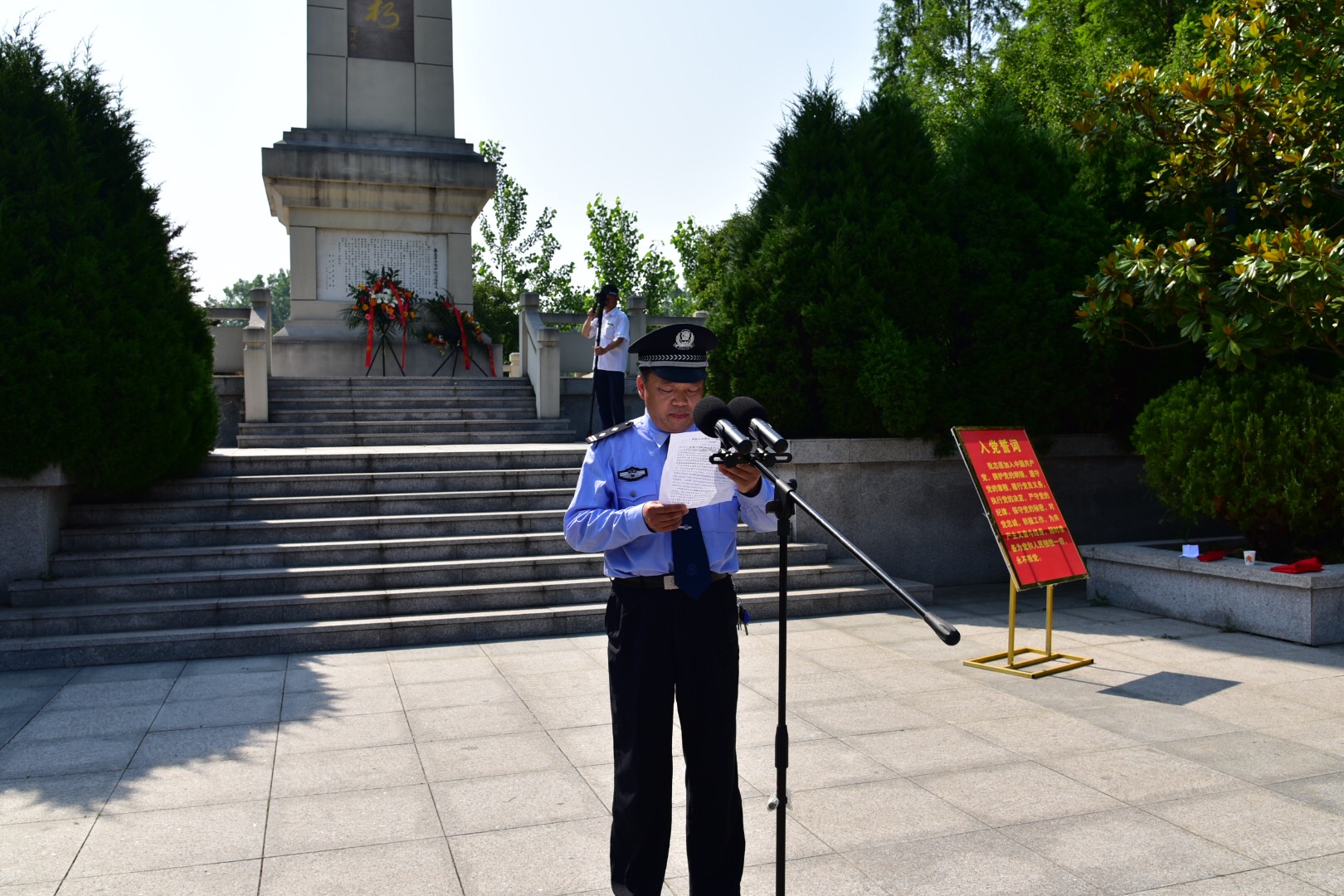 壽縣公安機(jī)關(guān)組織干警向小甸集革命烈士紀(jì)念碑敬獻(xiàn)花圈重溫入黨誓言