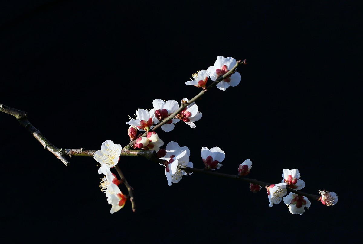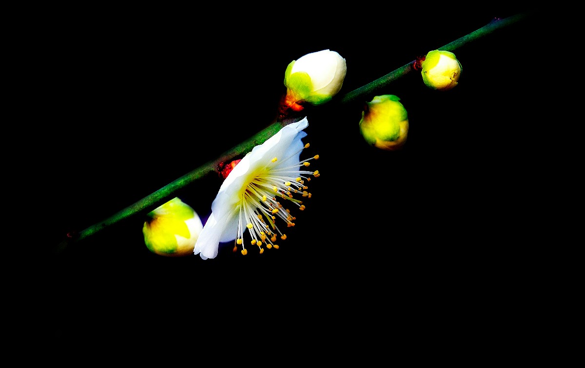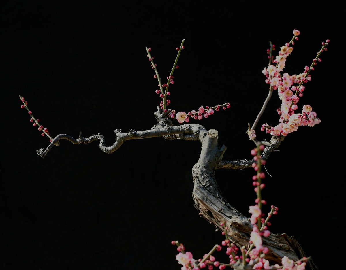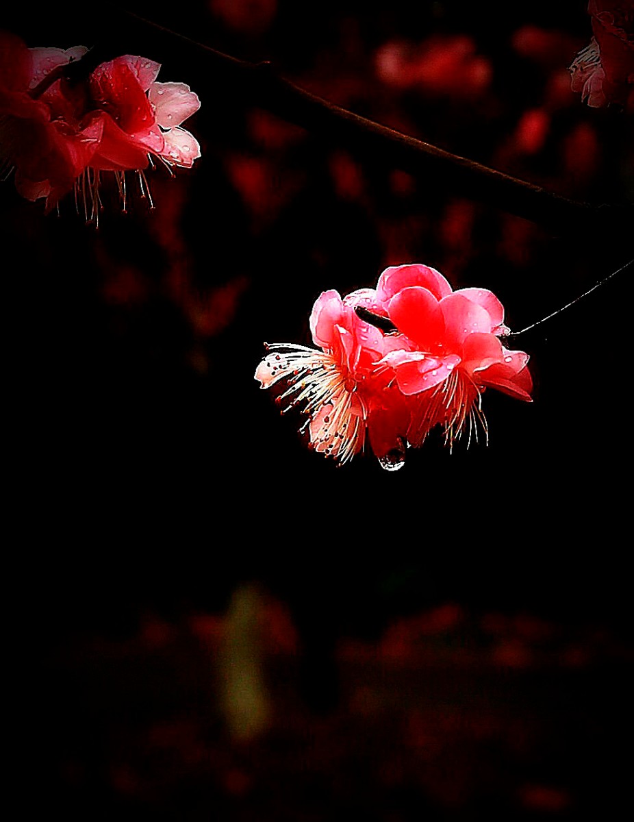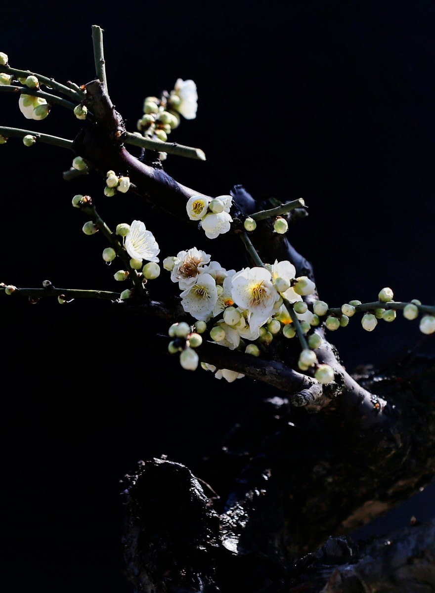 幸福老師,好拍攝。背景處理成為黑色,突出了主題和梅花的質感。請問幸福老師是使用的燈光晚上拍攝的嗎 |