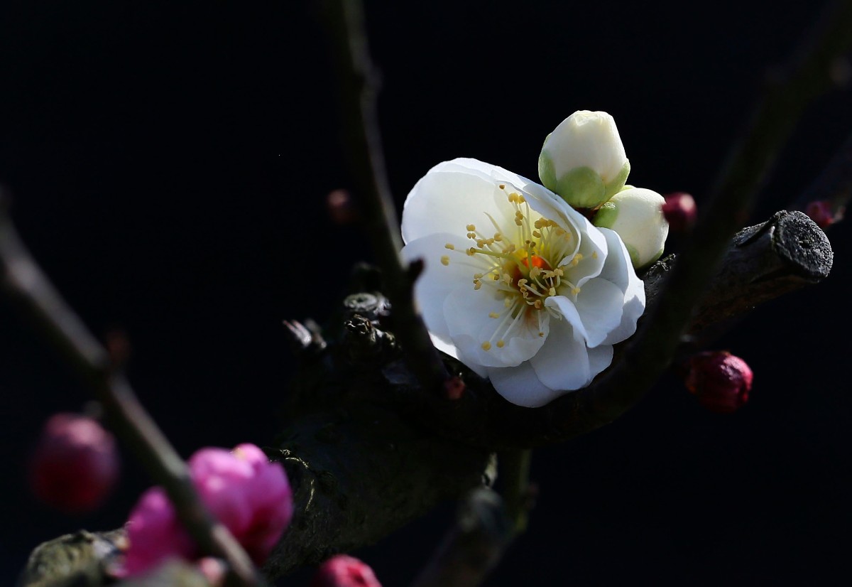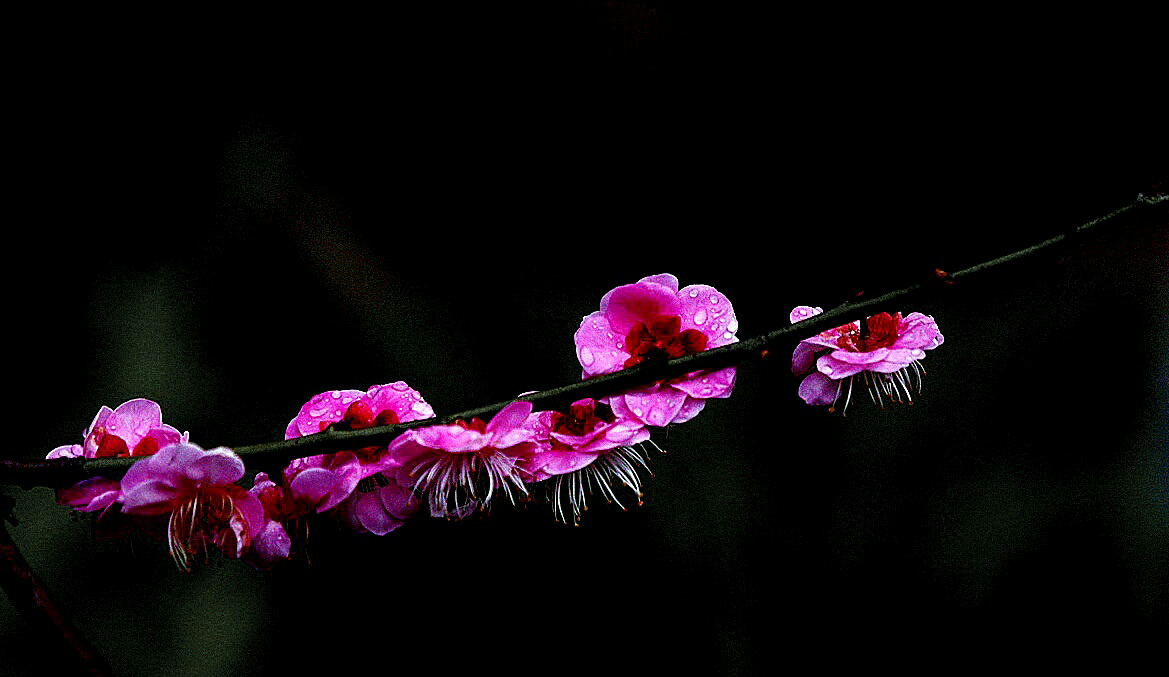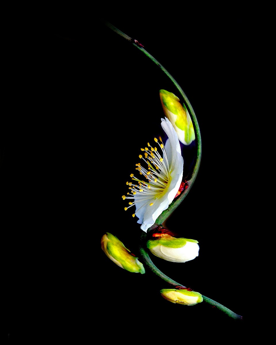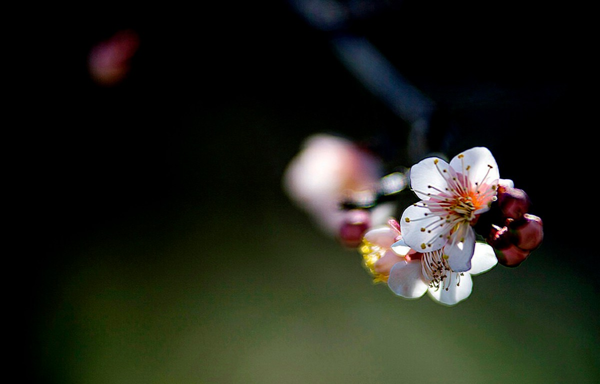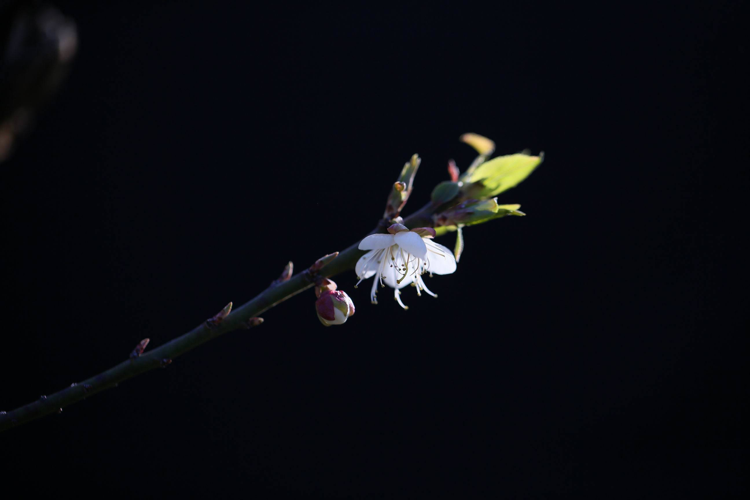 幸福老師,好拍攝。背景處理成為黑色,突出了主題和梅花的質感。請問幸福老師是使用的燈光晚上拍攝的嗎 |