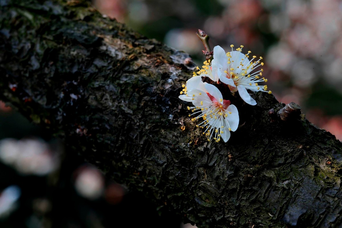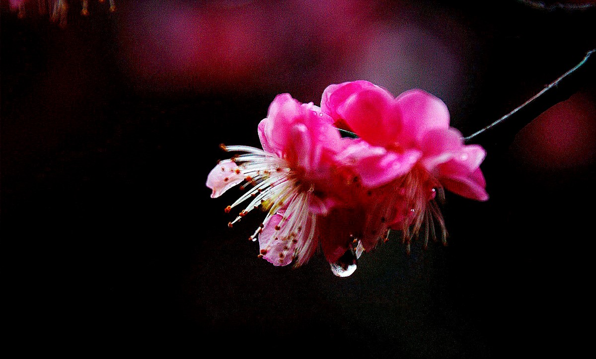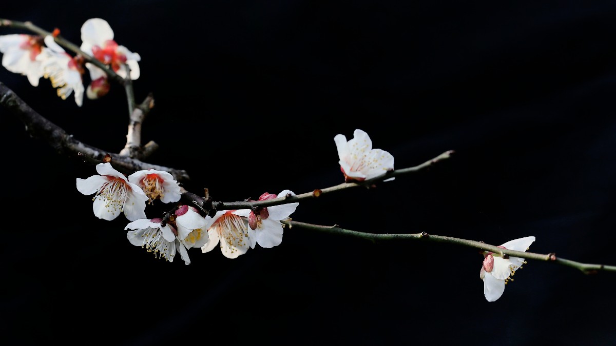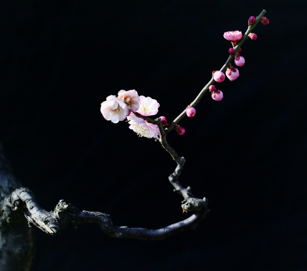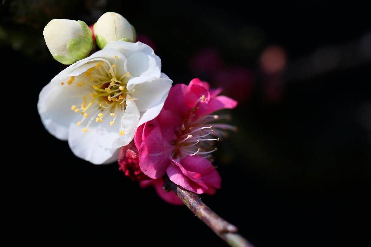 幸福老師,好拍攝。背景處理成為黑色,突出了主題和梅花的質感。請問幸福老師是使用的燈光晚上拍攝的嗎 |