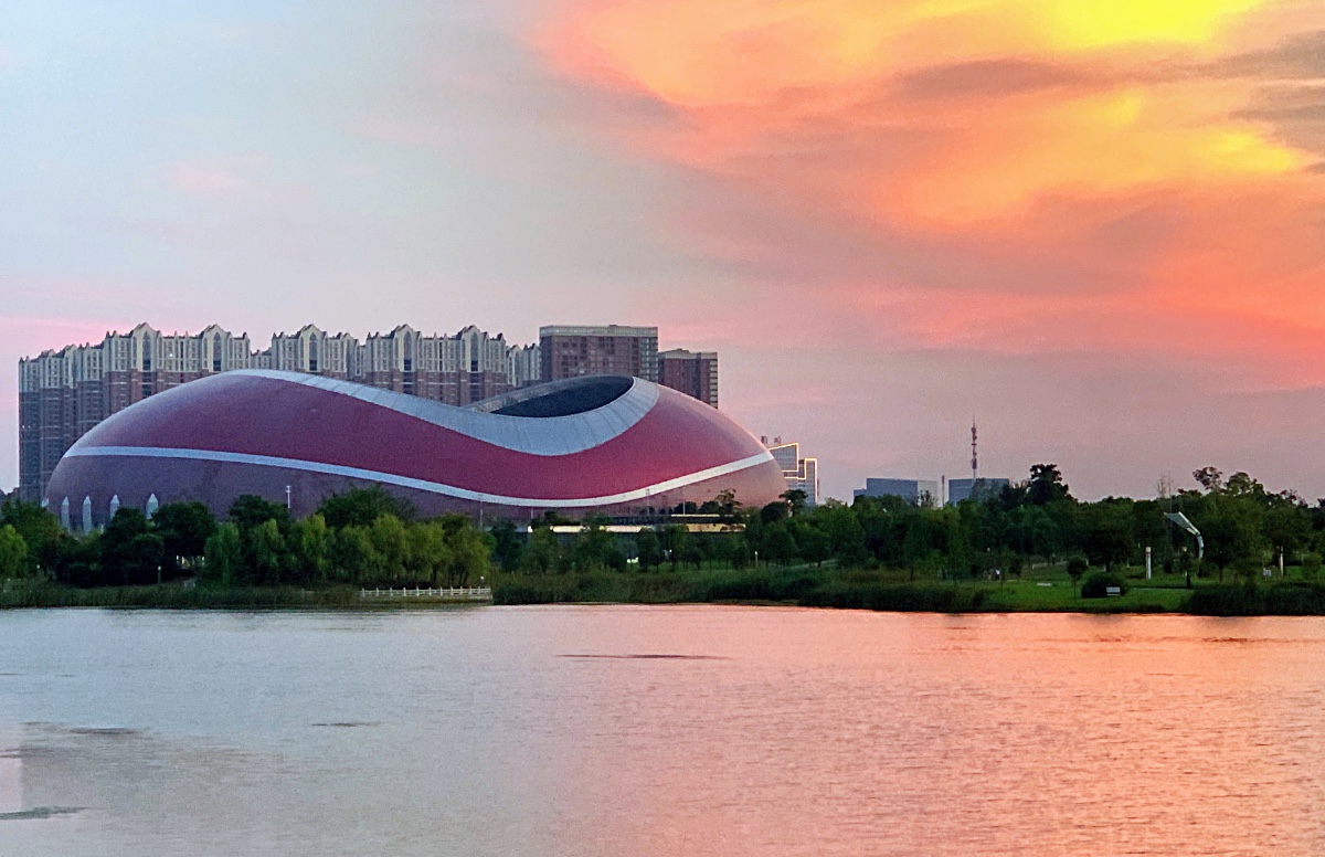 夕陽下的奧體中心拍的漂亮!