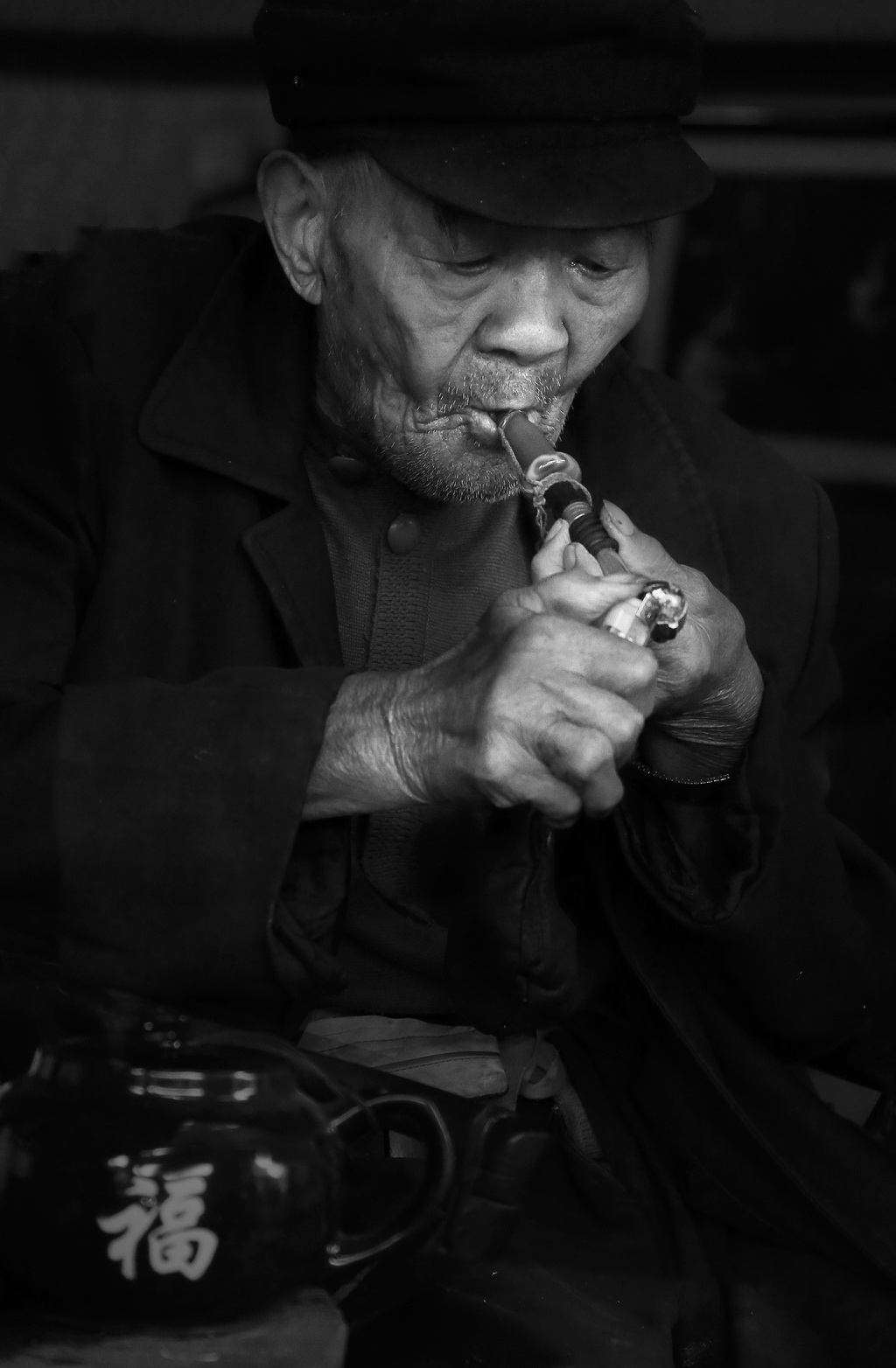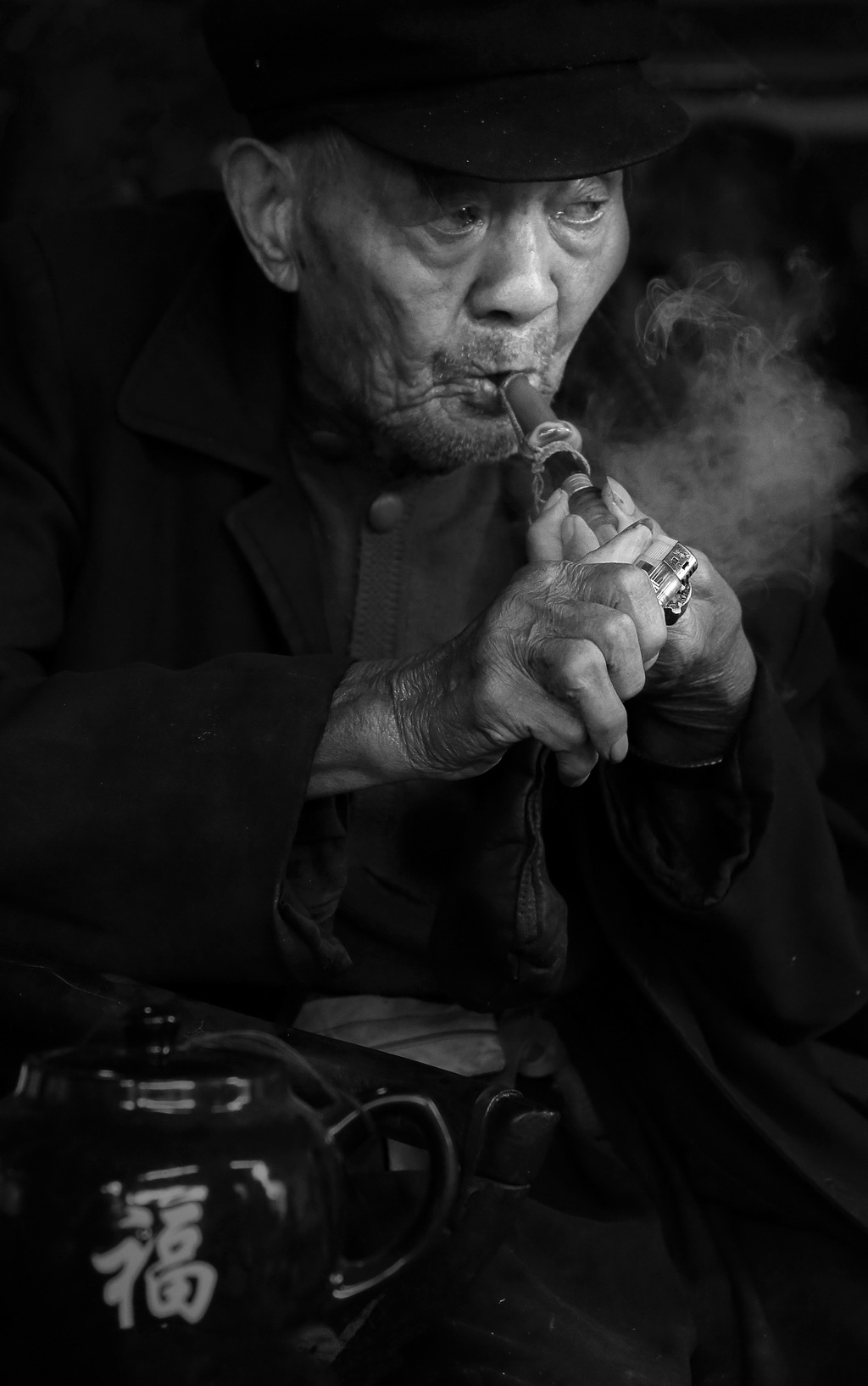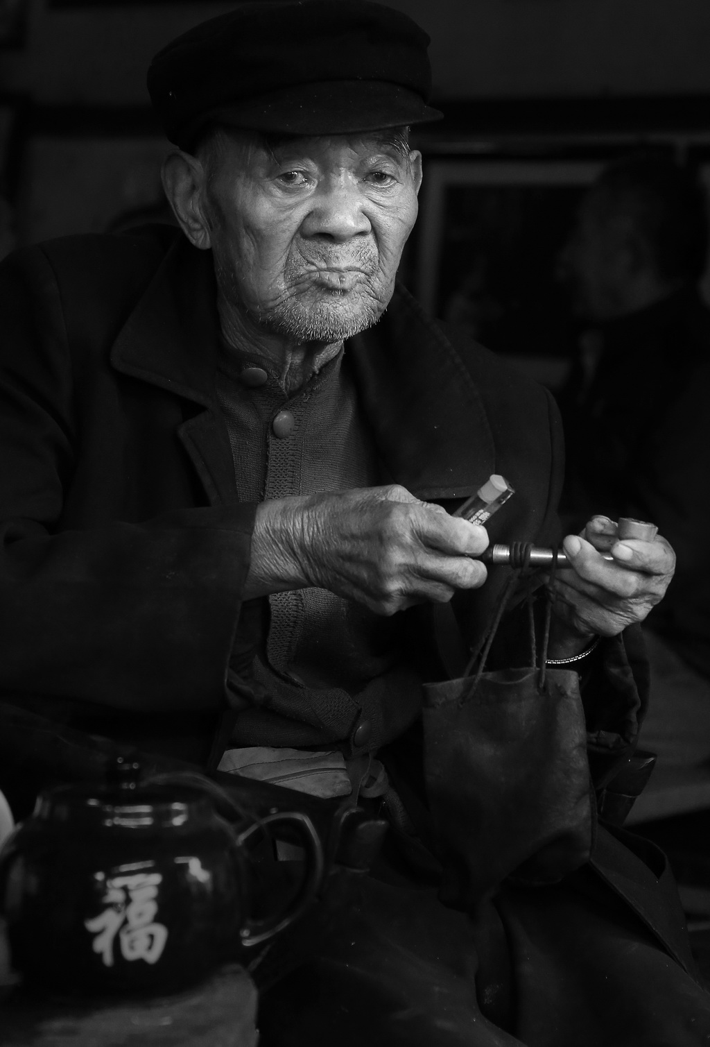 吸旱煙的老人
