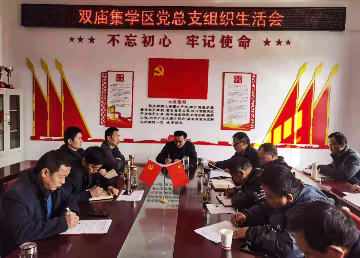 農歷二月二,風和日麗、春暖花開,壽縣雙廟集學區管理中心搬遷至新地點辦公,開局首次會議就是學區黨總支民主生活會。學管中心全體工作人員、學區內中小學校長、幼兒園園長參加會議。
