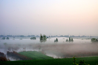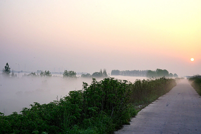 天剛發亮,淮河水面未有一點霧氣,但在大堤內彌漫了幾米高的白霧,有霧的范圍很小,從起霧到日出霧散,只有三十分鐘時間,從沒有想到平原大地起霧也能這樣神奇,美妙.