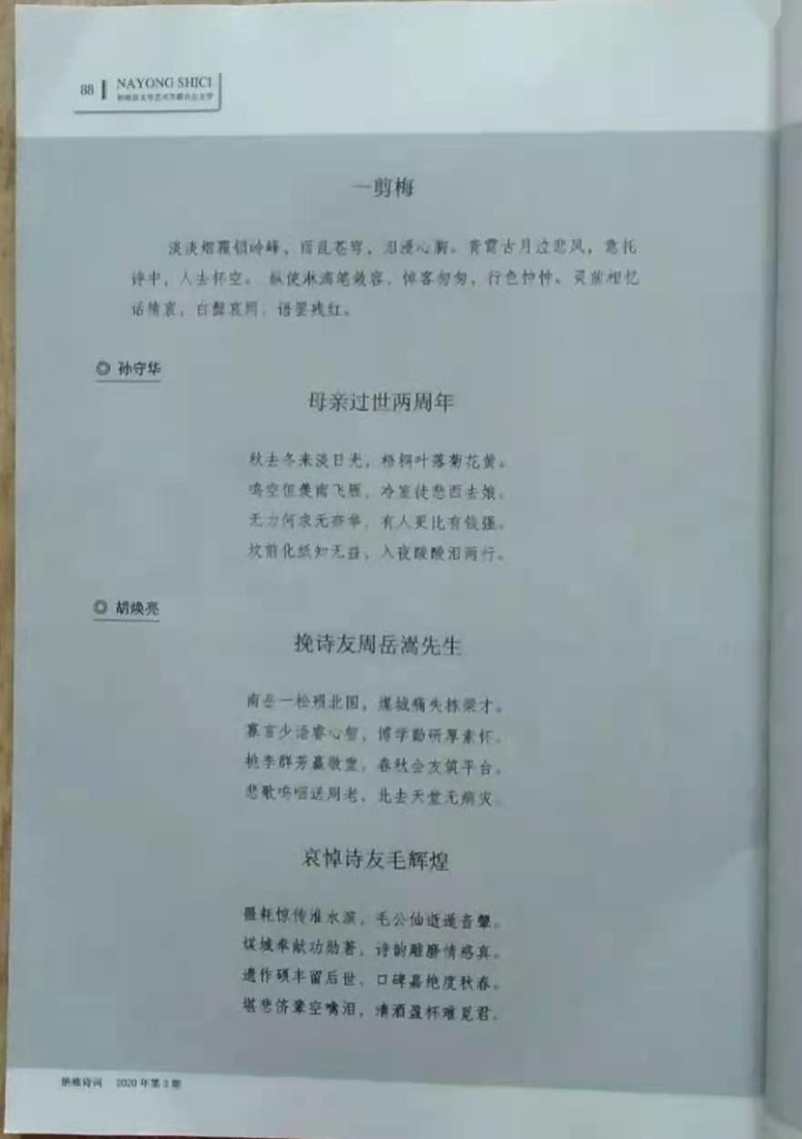 鳴謝《納雍詩詞》2020第三期發表拙律二首