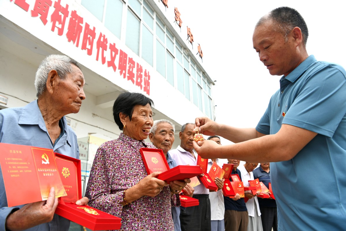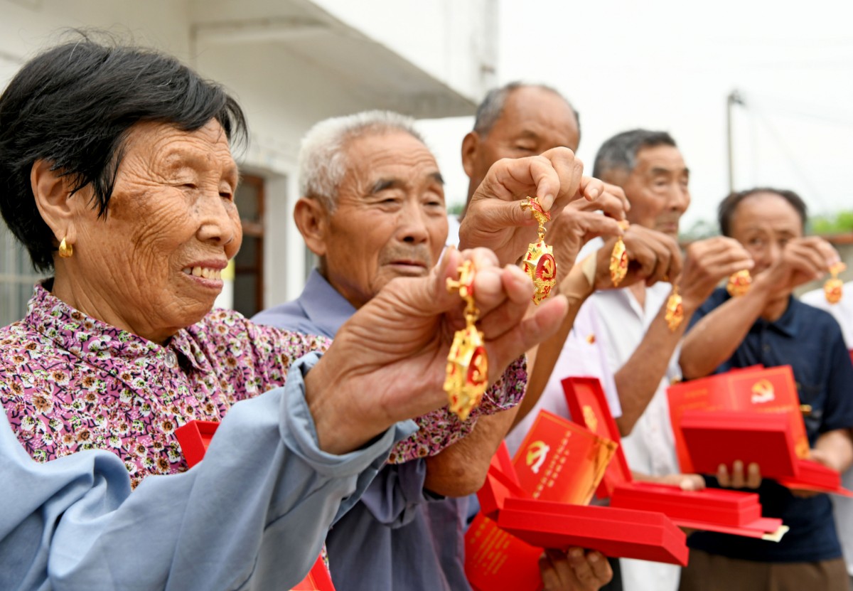 堰口鎮各村均為“光榮在黨50年”頒發紀念章