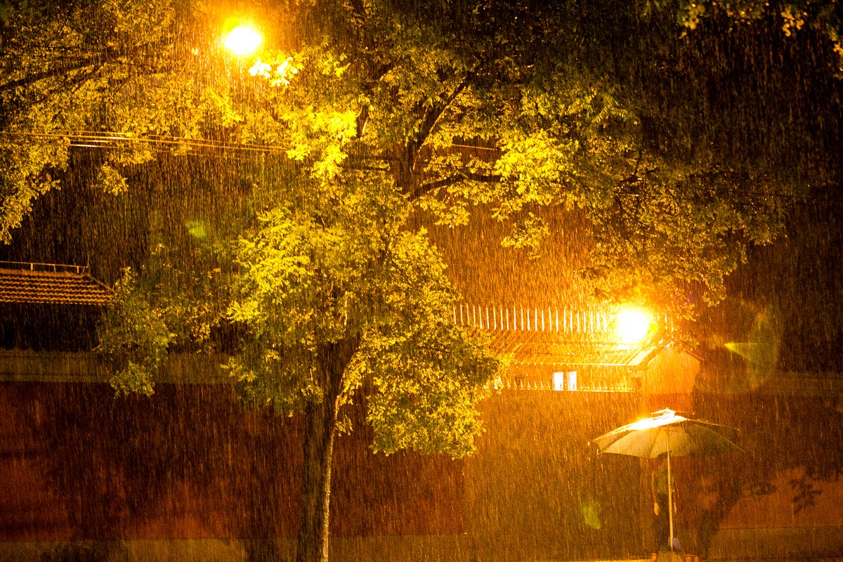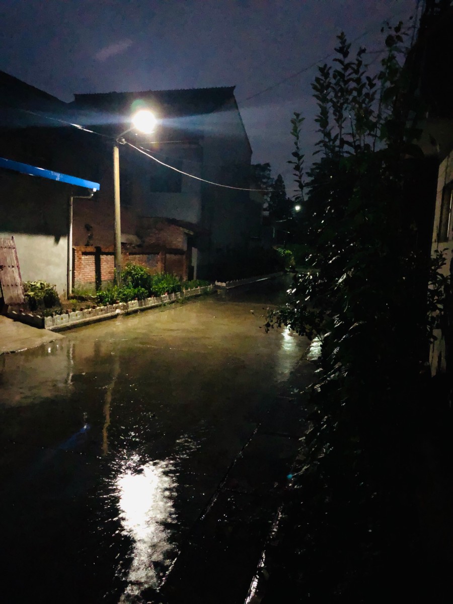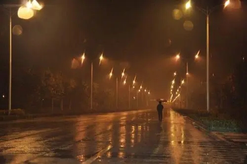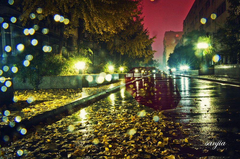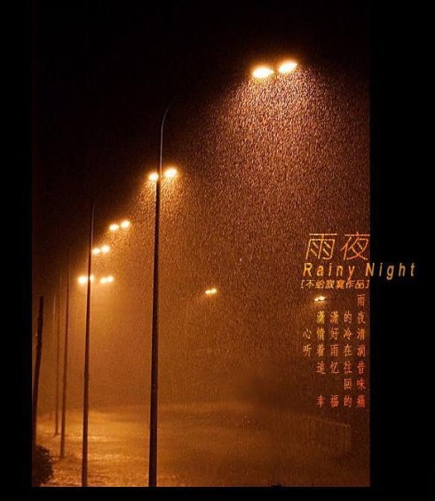 窗外雨瀟瀟,秋夜空寥。滿城燈火似波濤。桐葉飄零塵浥墜,風冷如刀。    鄉路愈迢遙,思緒如潮。家山入夢競飄搖。明月隱蹤何棄我,惟記童謠。