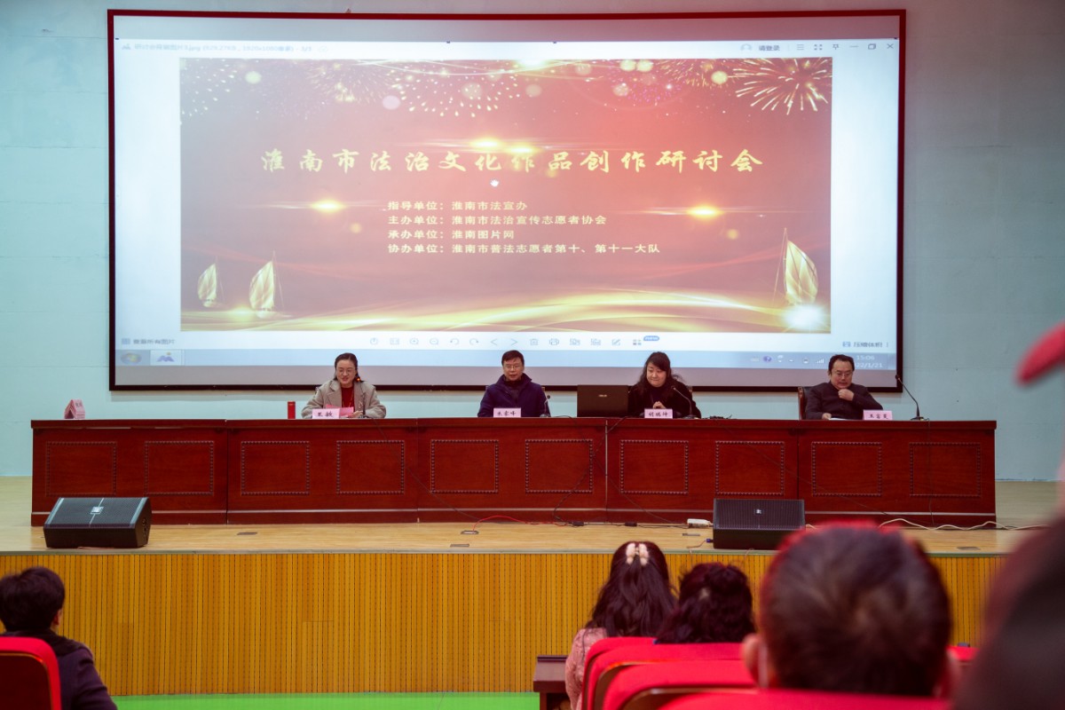 由淮南市法宣辦指導、淮南市法治宣傳志愿者協會主辦、淮南圖片網承辦、淮南市普法志愿者第十、第十一大隊協辦的“淮南市作家、攝影家及普法志愿者骨干法治文化作品研討會”于2022年1月21日下午2點20分在淮南市少年宮西樓法治文化館隆重召開。