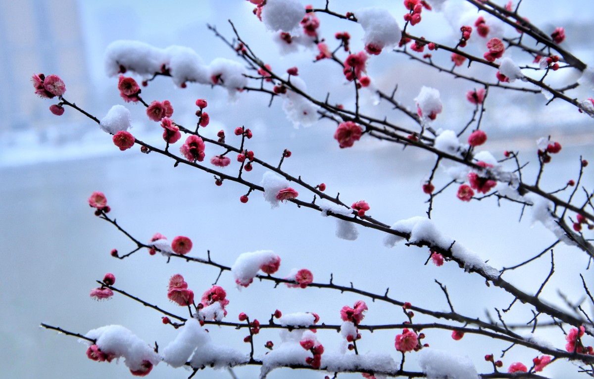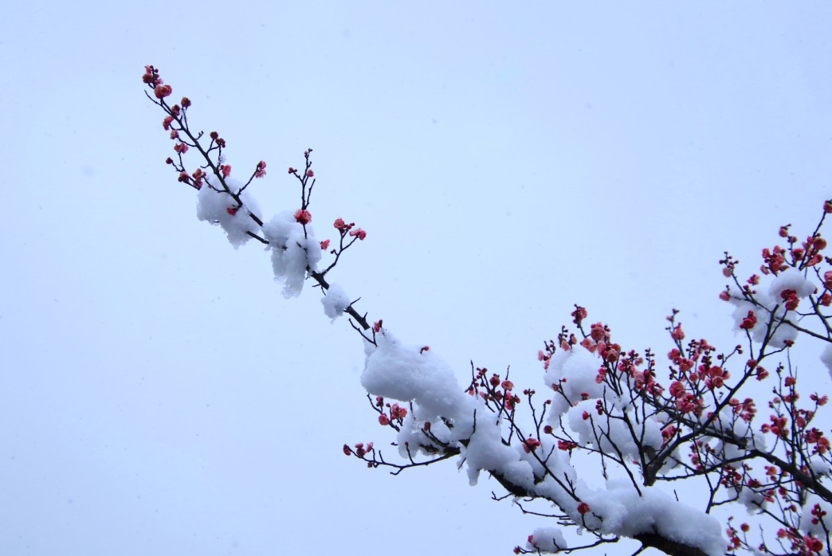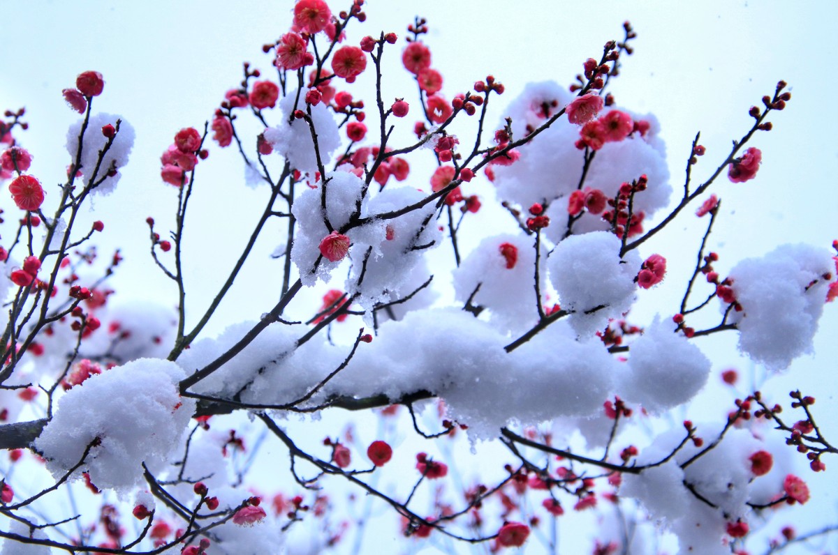 紅梅含羞戀白雪