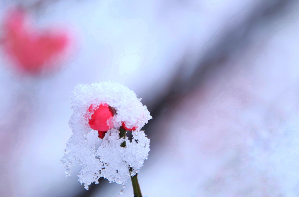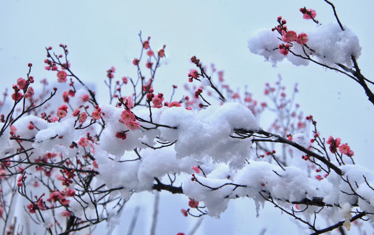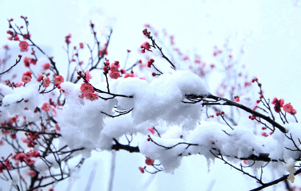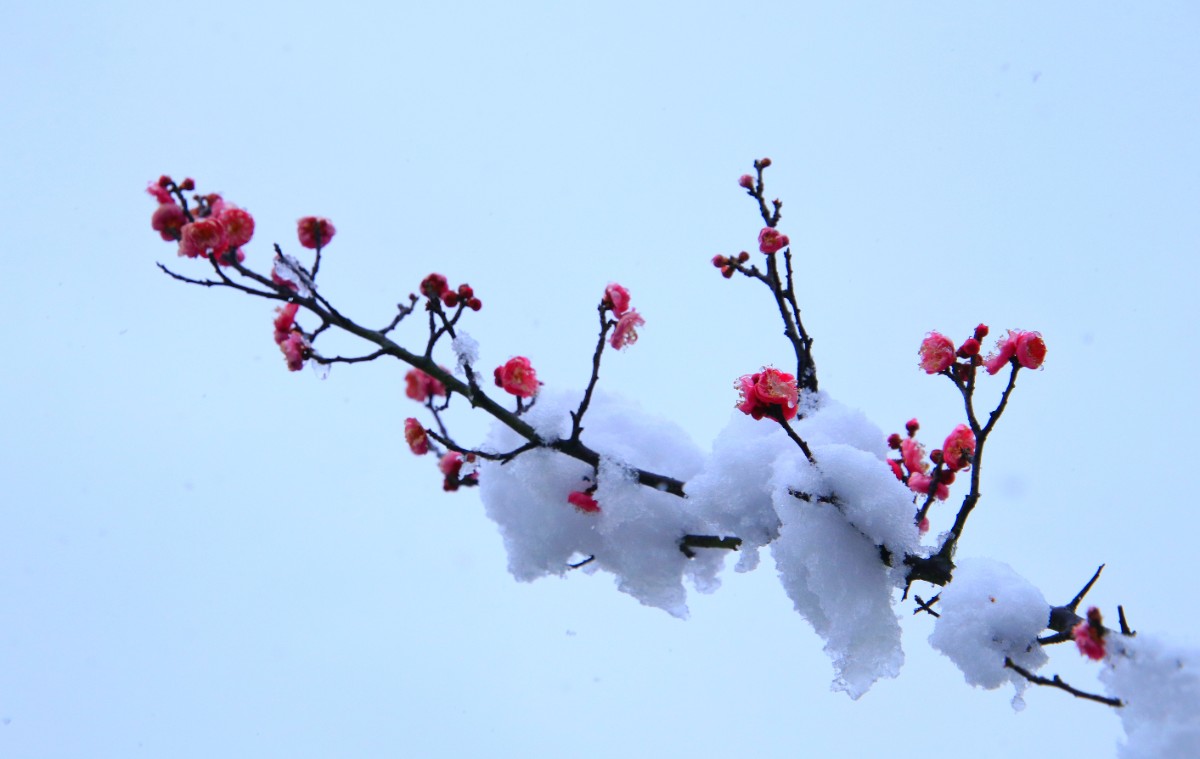 紅梅含羞戀白雪
