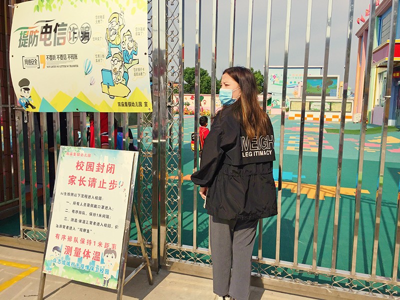 5月9日是小朋友們無比激動而又歡快的日子,他(她)們背著書包、帶著口罩、在家人的陪伴下,來到了久違了的幼兒園,大門前不扎堆、不聚集,保持“1米線間隔”,手持“幼兒健康信息申報卡”“疫情防控個人承諾書”,測量體溫進入幼兒園內,
