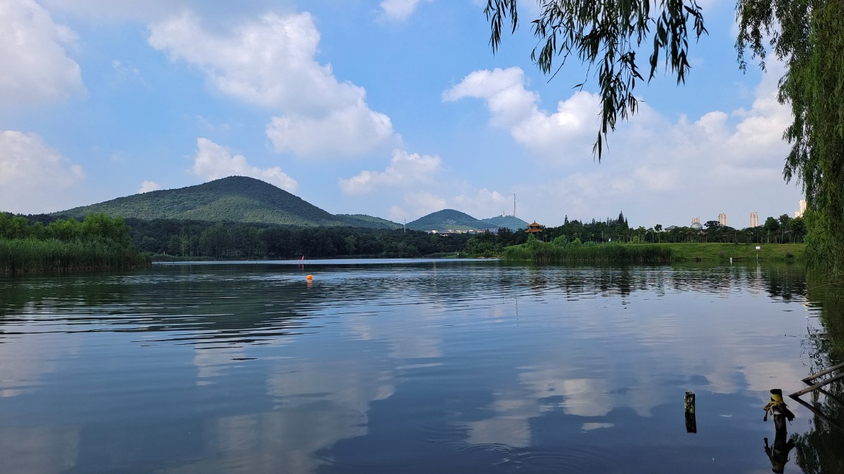 #淮南美景# #大通濕地公園# 炎炎夏日,大通濕地成了淮南市民游泳納涼的好地方,今天上午駕車來此,藍天白云碧水青山,哈哈,風景在路上 隨感:
