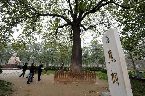 這就是那張傳播最廣的照片,焦裕祿身后的泡桐就是著名的“焦桐”,如今已長成參天大樹。