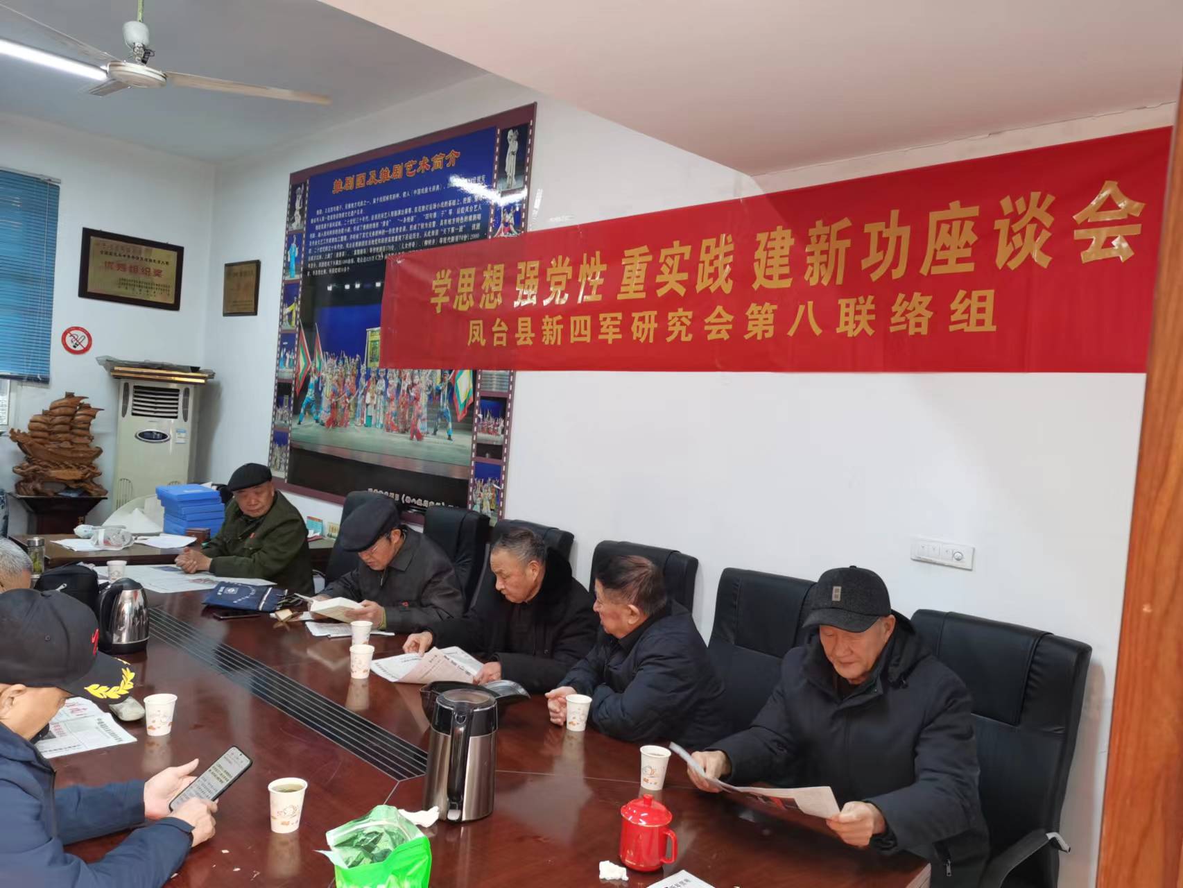 縣新四軍研究會第八聯絡組召開了學思想、強黨性、重實踐、建新功座談會1月13日上午,縣新四軍研究會第八聯絡組在縣推劇團二樓會議室召開了“學思想、強黨性、重實踐、建新功”座談會。會上,學習了《習近平新時代中國特色社會主義思想專題摘編》中第十八個專題“用中國特色社會主義思想武裝頭腦,指導實踐,推動工作”的內容;學習了《國家主席習近平發表的2024年新年賀詞》;學習了《大江南北》雜志刊登的《牢記總書記囑托,講好紅色故事》這篇文章??h新研會第八聯絡組組長張厚亮對本組2023年工作進行了總結,對2024年組里的工作進行了安排。2023年縣新四軍研究會第八聯絡組在縣新研會正確領導下,勇毅前行,取得了沉甸甸的收獲,概括起來六句話,十八個字,即“勤學習、愛寫作、抓創建、講文明、重研學、樂奉獻?!敝饕w現以下幾個方面: