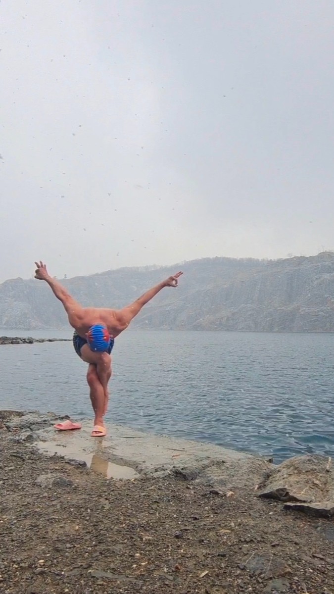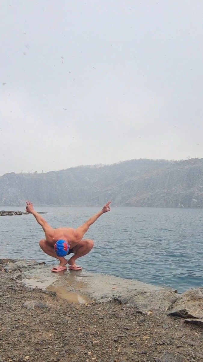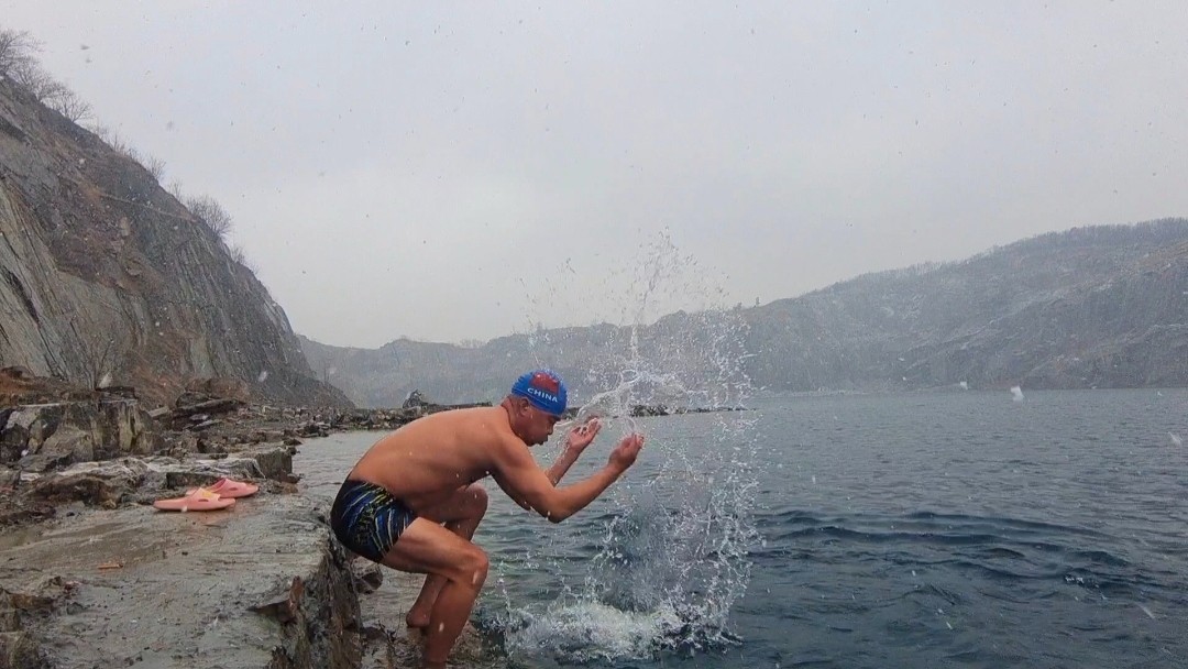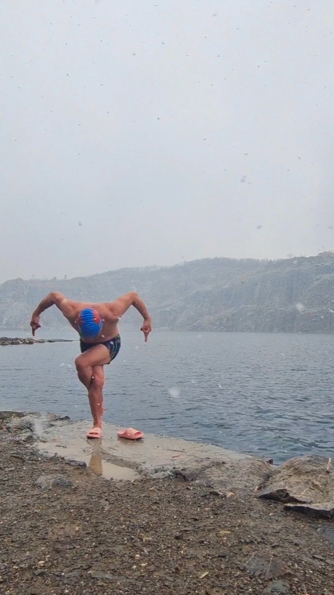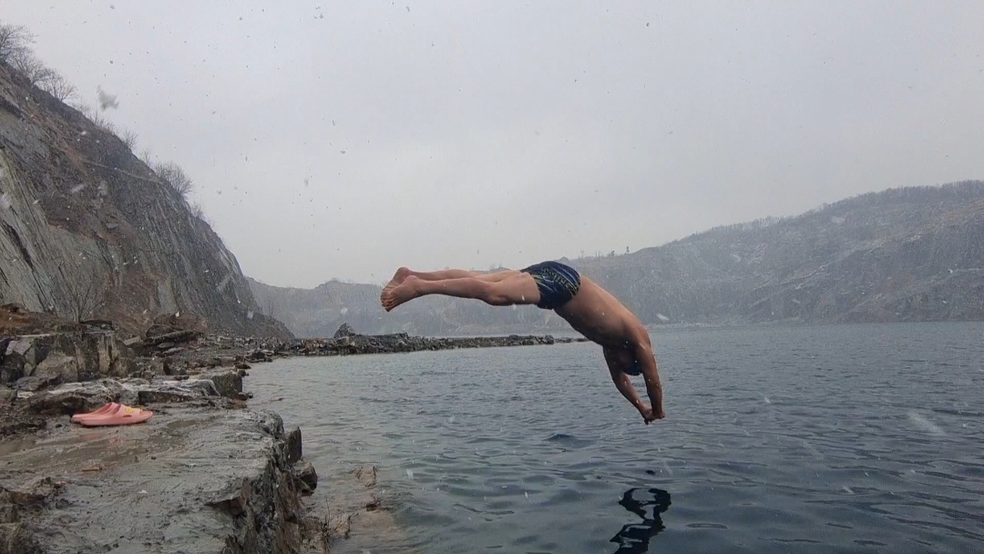 淮南今天氣溫-3~0°C,大雪,啥也擋不住冬泳人的熱情,今天下午跳水激情淮南天目湖