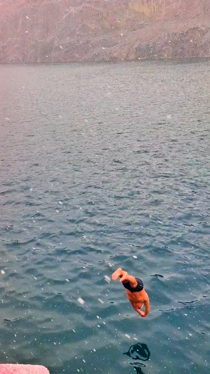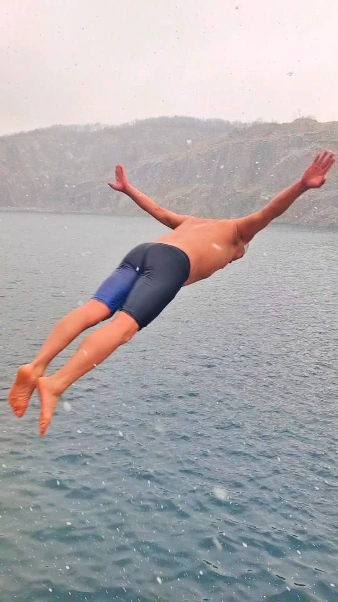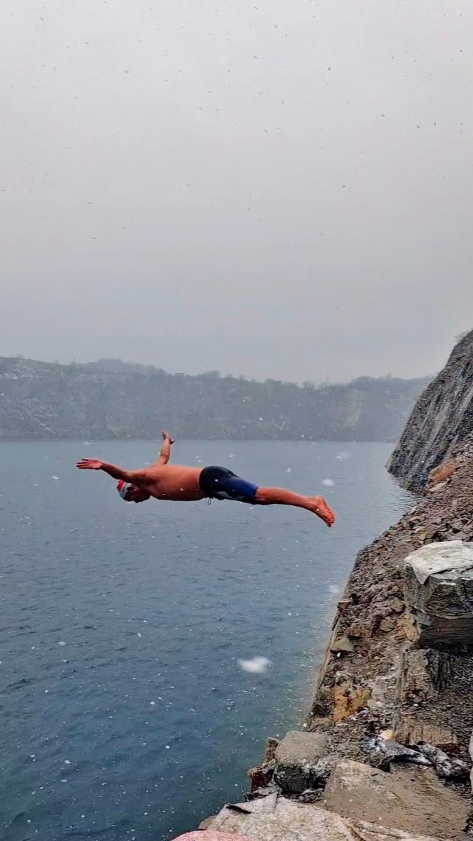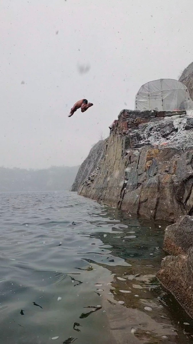 淮南今天氣溫-3~0°C,大雪,啥也擋不住冬泳人的熱情,今天下午跳水激情淮南天目湖