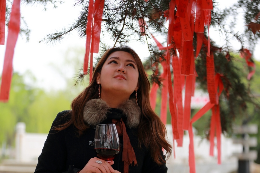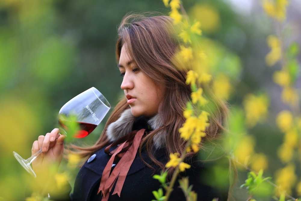 手捧紅酒的少女