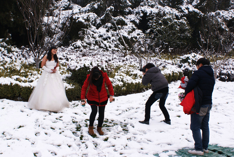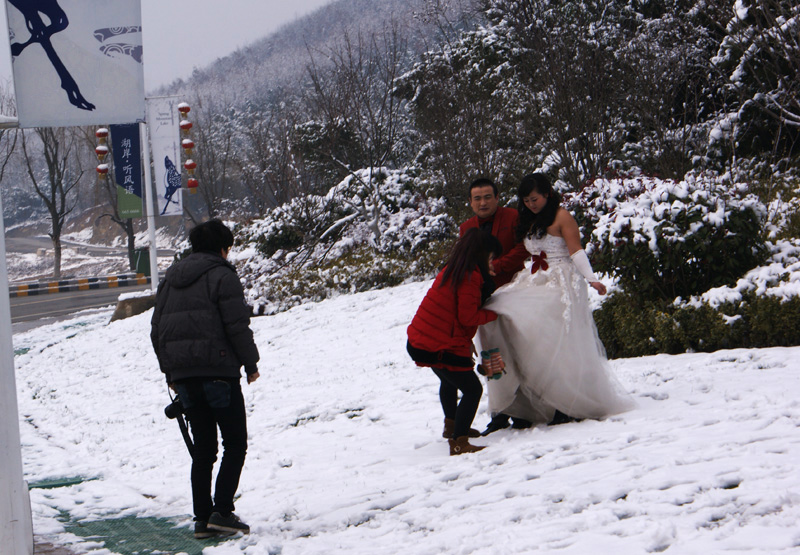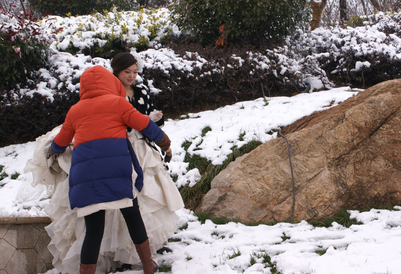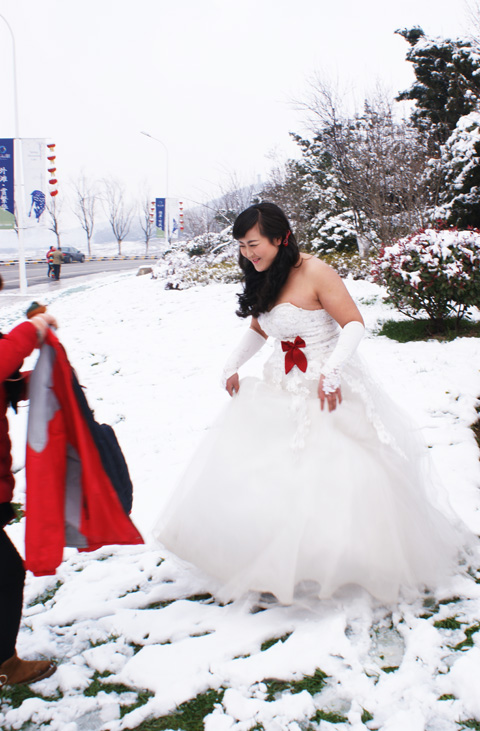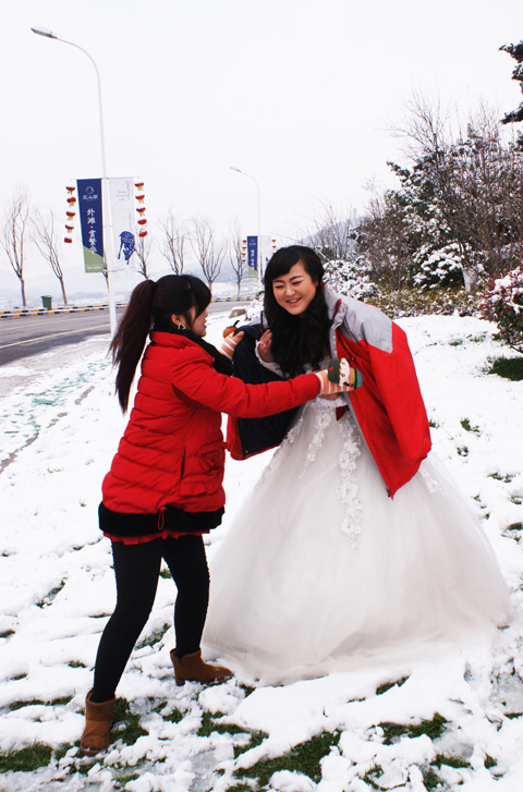 2014年第一場雪終于下了,2014年1月8日上午冬泳上來跑步熱身,看到他們就走過去說:“佩服,你們比冬泳愛好者還厲害,美麗動人!”他們笑了。。。。。