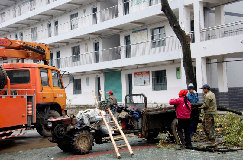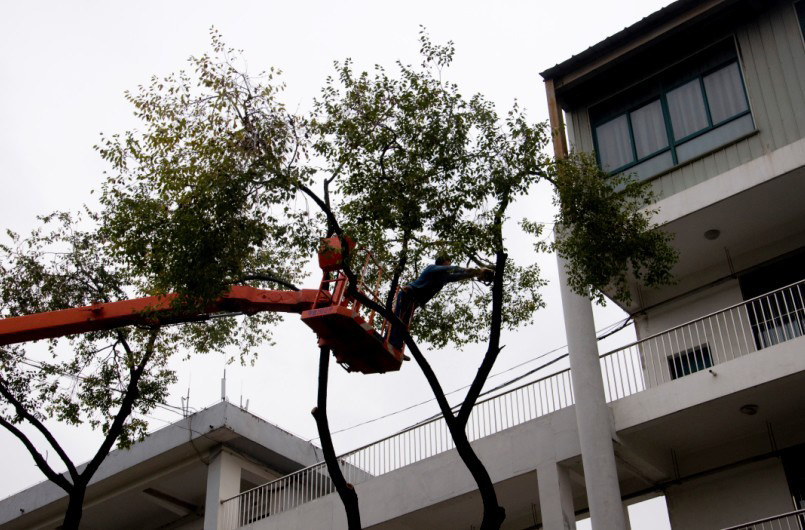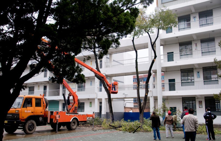 2014年11月8日上午,在淮南市洞山中學,市園林局動用吊車將校園內死樹枝清除,以防止樹枝墜落誤傷在校學生